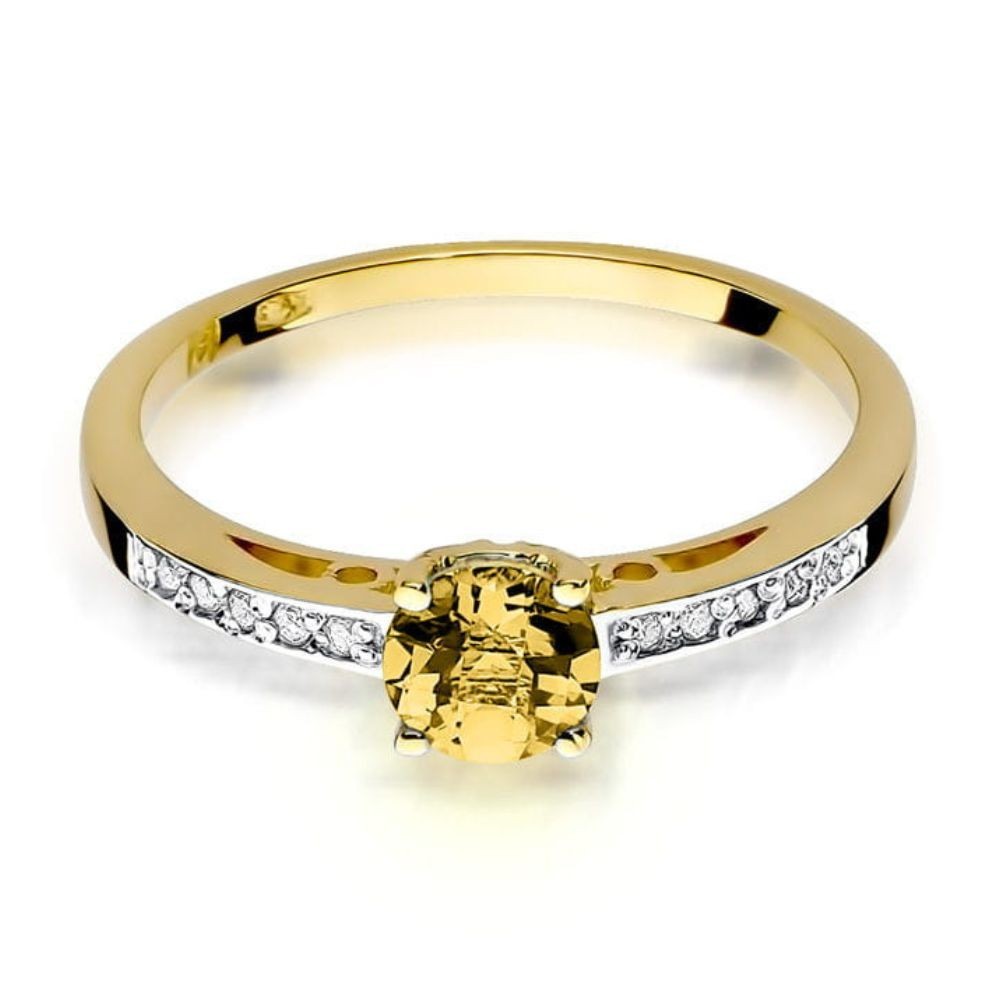 Citrino karalienė – geltono aukso žiedas su citrinu ir deimantais (0,55 ct)