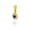 Geltono aukso pakabukas su safyru ir žėrinčiais deimantais aplink, sukuriantis gėlės formos dizainą. Klasikinis pasirinkimas kasdienai ir ypatingoms progoms. Suteikite savo stiliui žavesį su šiuo unikaliu papuošalu.