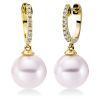 Geltono aukso auskarai su perlais 11.5 mm ir deimantais (0.11 ct)