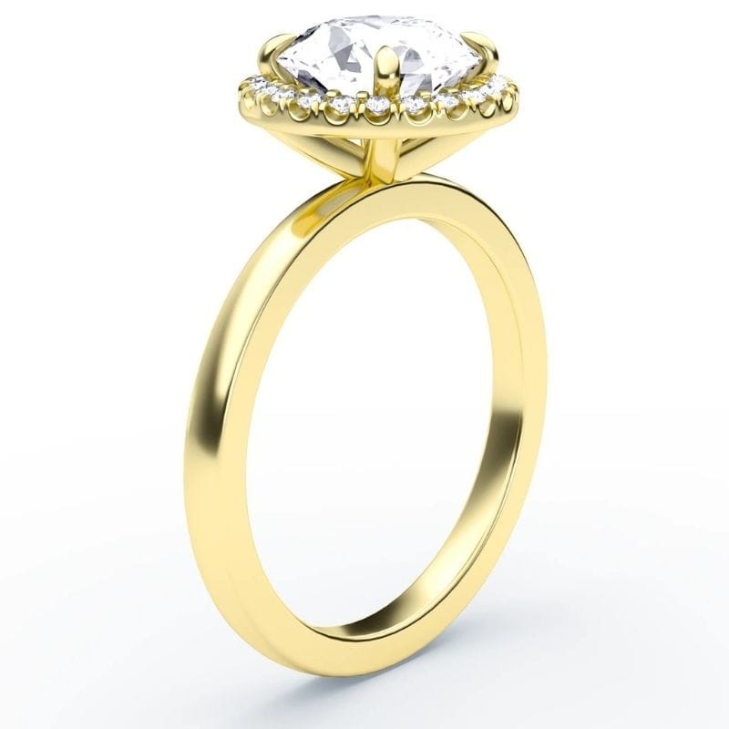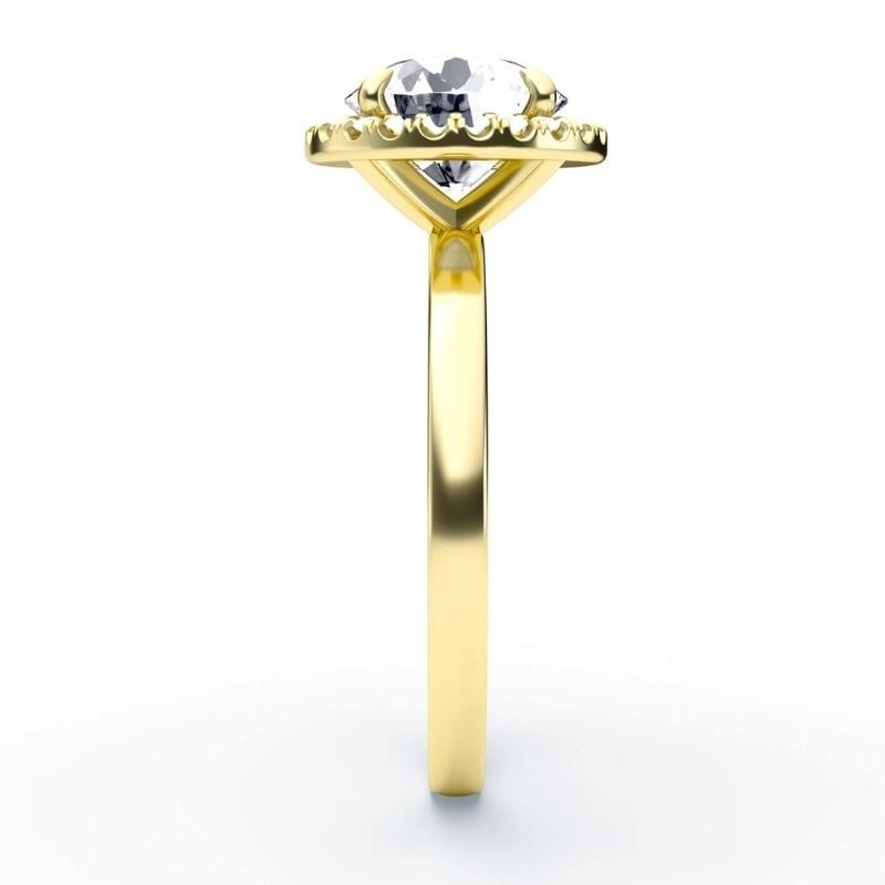 Sužadėtuvių žiedas su išraiškingai išplėstu siluetu Round pjūvio deimante
