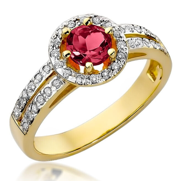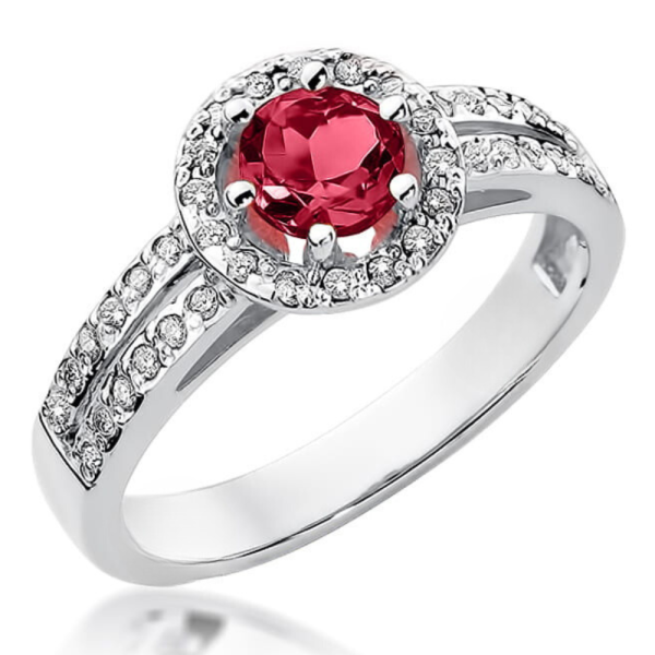 Halo sužadėtuvių žiedas su rubinu ir deimantais – Apvalus Rubinas (0.70 ct)