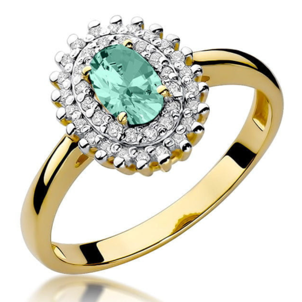 Halo sužadėtuvių žiedas su smaragdu ir deimantais – Ovalus Smaragdas (0.59 ct)