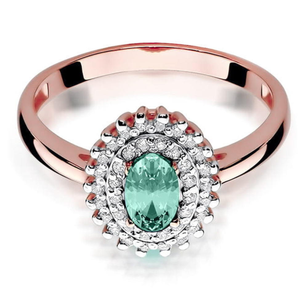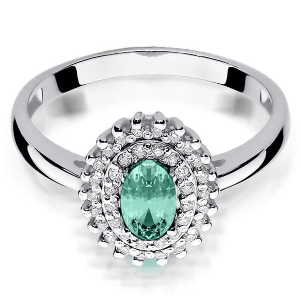 Halo sužadėtuvių žiedas su smaragdu ir deimantais – Ovalus Smaragdas (0.59 ct)