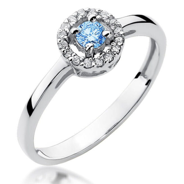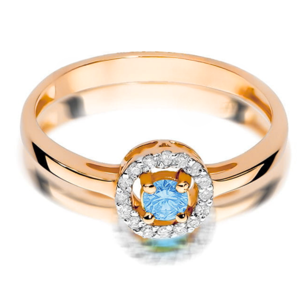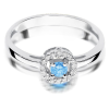 Sužadėtuvių žiedas su 0.15 karato apvalios formos topazu ir deimantais aplink. Natūralūs deimantai.