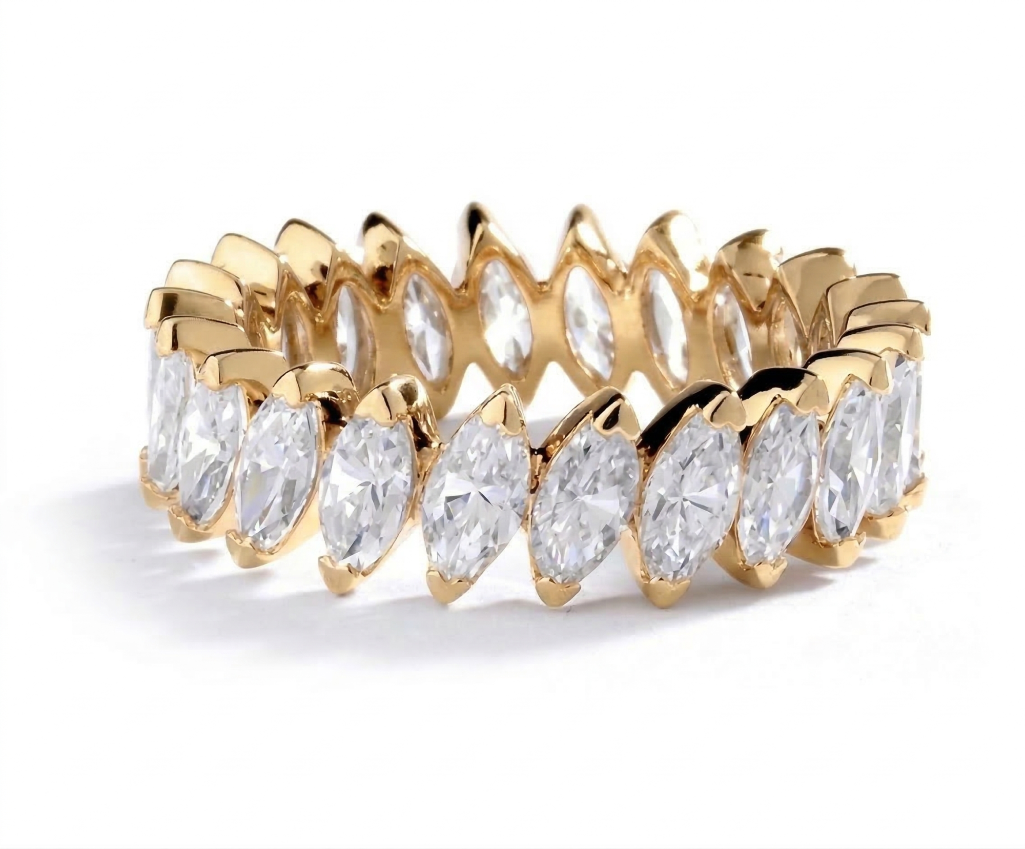 Išskirtinė deimantinė juostelė su 14 markizės formos deimantais – žiedas su 4.26 karato deimantais. Aukščiausia žiedo kokybė iš Lietuvos. Maksimalus patogumas kasdieniam nešiojimui. Tai išskirtinis pasirinkimas tiems, kurie vertina aukštą kokybę. Pagaminta Lietuvoje – pagal aukščiausius standartus.