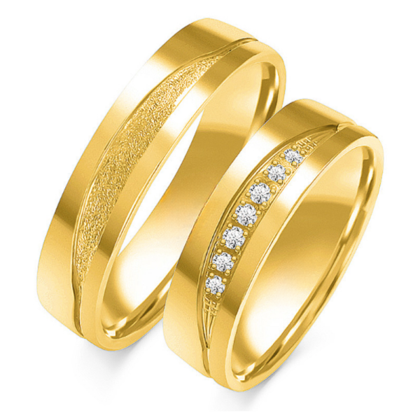 Nepakartojamo grožio vestuviniai žiedai išskirtinio stiliaus, aukštos kokybės, su komforto zona. Puikus pasirinkimas, atspindintis jūsų meilės istoriją. Jų technologija išsiskiria – vestuviniai žiedai gaminami iš grūdinto aukso, kuris atsparus mikro įtrūkimams, neturi sudėtyje nikelio bei mažiau braižosi. Žiedai gali būti pagaminti pagal užsakymą: raudono, geltono bei balto aukso arba dviėjų aukso spalvu, skirtingu žiedo pločių arba su deimantais.