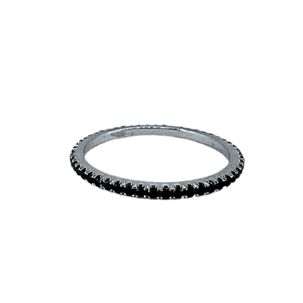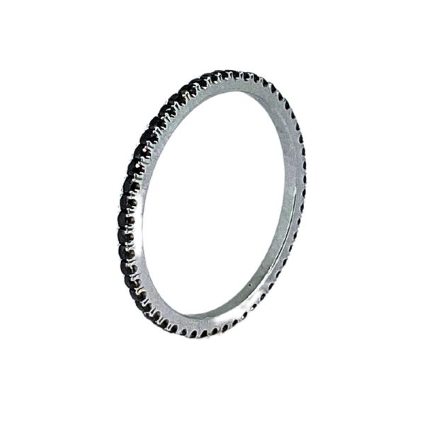 Išskirtinės kokybės rankų darbo deimantinė juostelė su smulkiais juodais deimantais, deimantai sudėti aplink visą žiedą. Aukščiausios kokybės deimantų įdėjimas. Stilus ir prabanga iš „Fashion Gold” juvelyrikos namų.