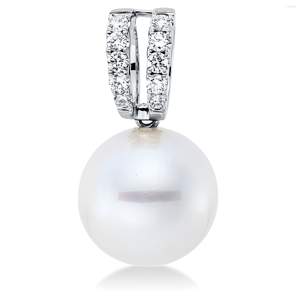 Klasikinis auksinis pakabukas su jūriniu perlu ir deimantais (South Sea, 10.5 mm, 0.13 ct)
