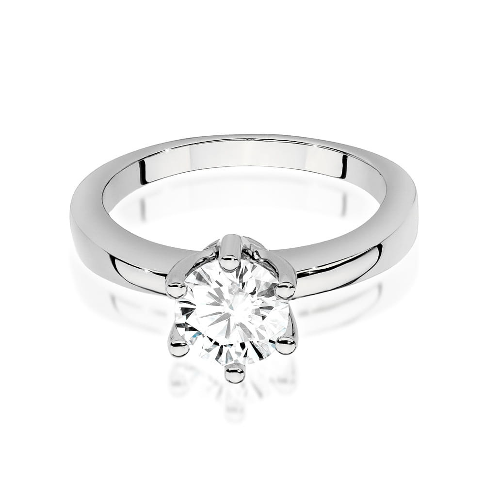 Balto aukso žiedas su vienu 1,00 ct deimantu. Deimanto spindėjimas įkūnija išskirtinę eleganciją. Šešių kojelių karūnelėje, į kurią įtvirtintas deimantas, daro jį ypatingu. Šis klasikinis žiedo dizainas idealiai tinka sužadėtuvėms ir ypatingoms progoms.