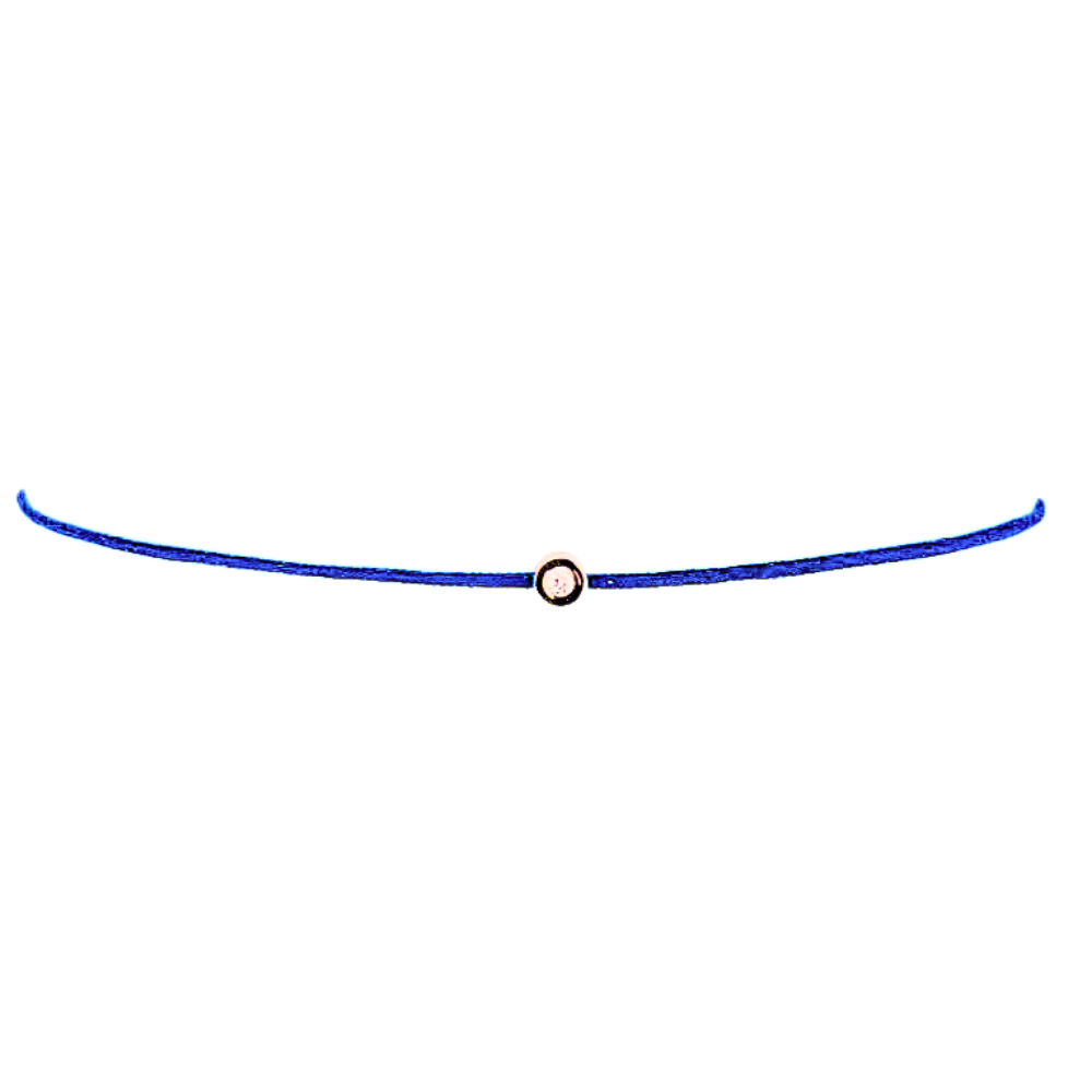Laimę nešantis mėlynas siūlas-apyrankė su deimantu 0,01 ct (minimalistinė raudono aukso detalė)