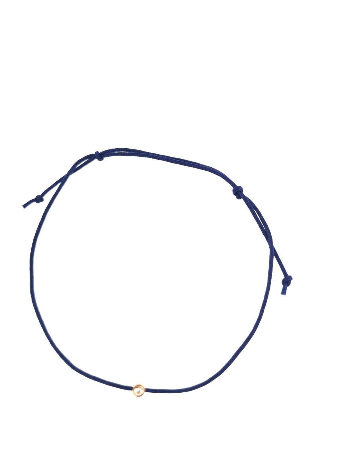 Laimę nešantis mėlynas siūlas-apyrankė su deimantu (geltonas auksas, minimalistinis)
