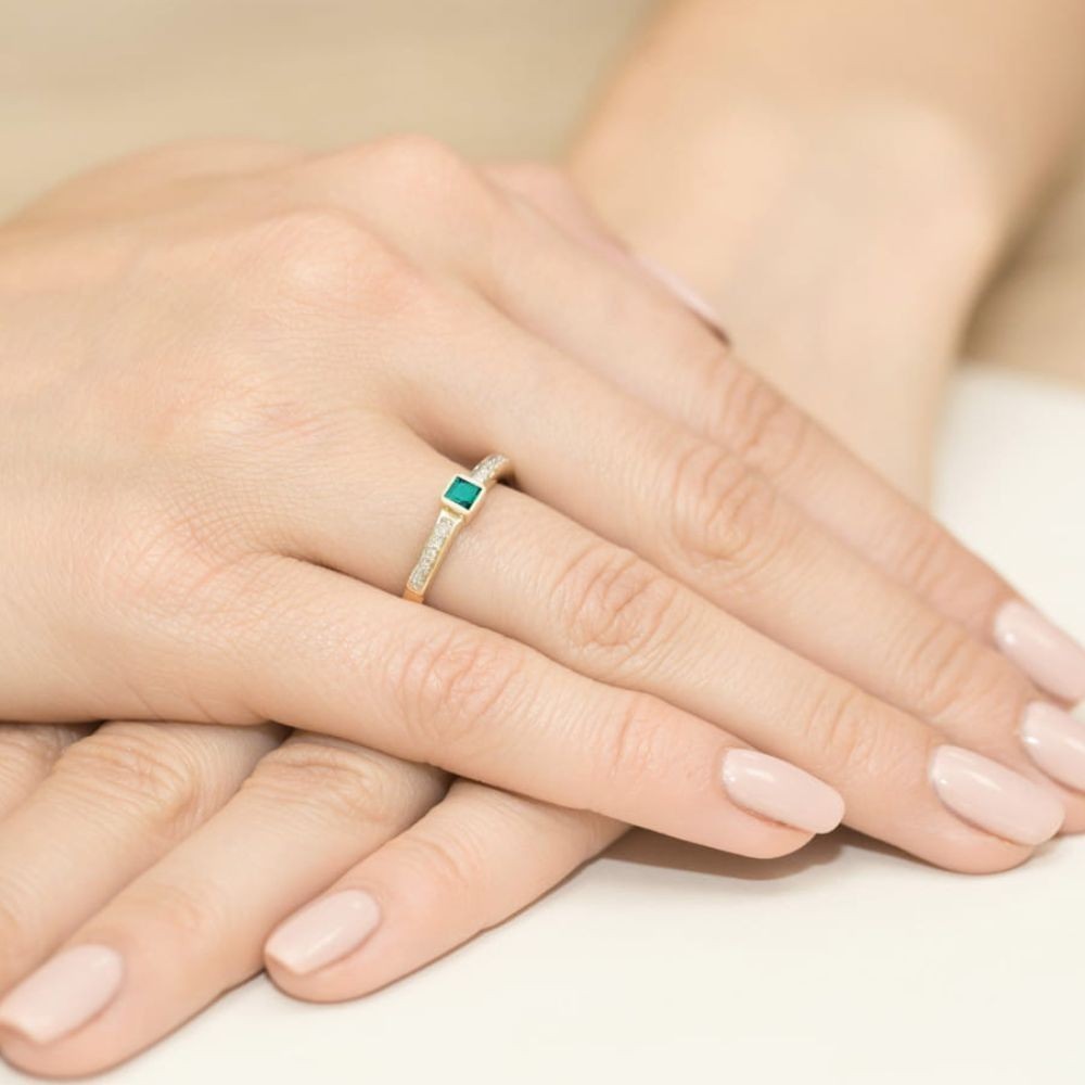 Kvadratinio smaragdo ir deimantų žiedas su moderniu dizainu. Smaragdas įremtas į auksinį remelį, deimantai sudėti į linijas iš abiejų pusių, kaip smaragdas tęsinys. Puikiai tinka sužadėtuvėms ir kasdienai, pridėdamas prabangos akcentą jūsų stilui.