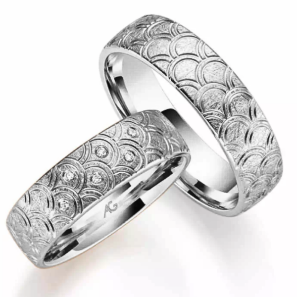 Modernus, išskirtinis 6 mm matinės faktūros su reljefiniais raštais vestuvinis žiedas su deimantais 0,03 ct- Ekskliuzivinė Vokiška kolekcija „Gerstner“ kompanijos. Aukščiausia kokybė. Rankų darbas. Tiesi forma ir minimali vidinė komforto zona užtikrina maksimalų patogumą kasdieniam nešiojimui.