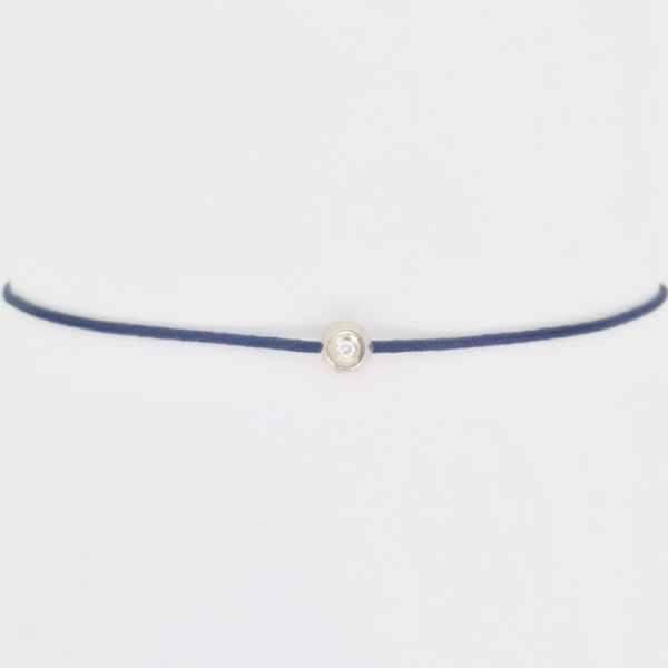 Mėlyno siūlo apyrankė su balto aukso detalė ir deimantu