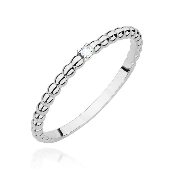 Minimalistinis balto aukso žiedas su deimantu (0,02 ct)