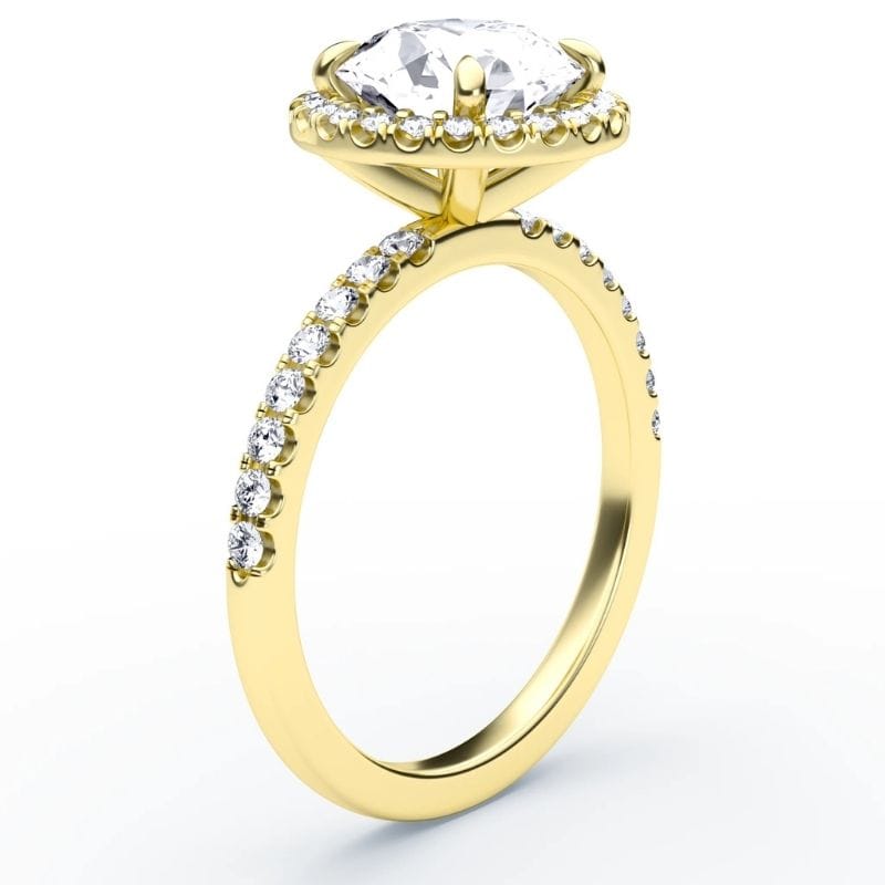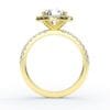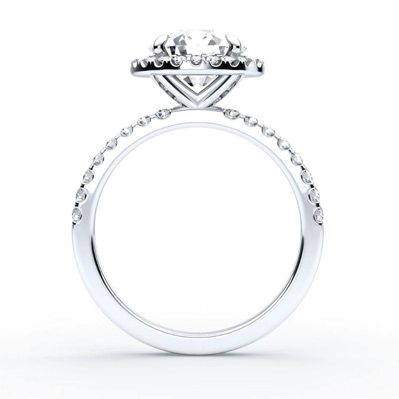 Papildomi deimantai lankelyje išskiria šį sužadėtuvių žiedą iš klasikinių Halo modelių. Jie sukuria šiuolaikišką, dinamišką spindesį ir leidžia papuošalui atrodyti prabangiai iš bet kurio kampo.