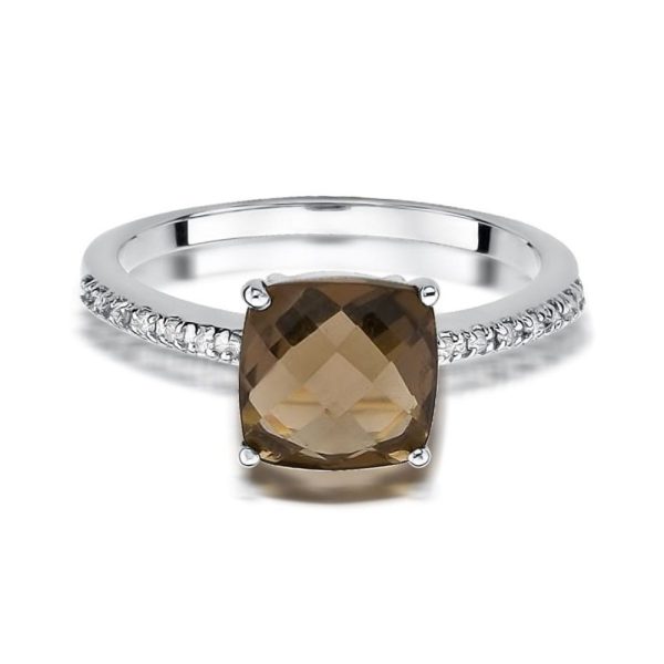 • Centrinis akmuo: Dūminis kvarcas kvadratinės formos 2,00 ct