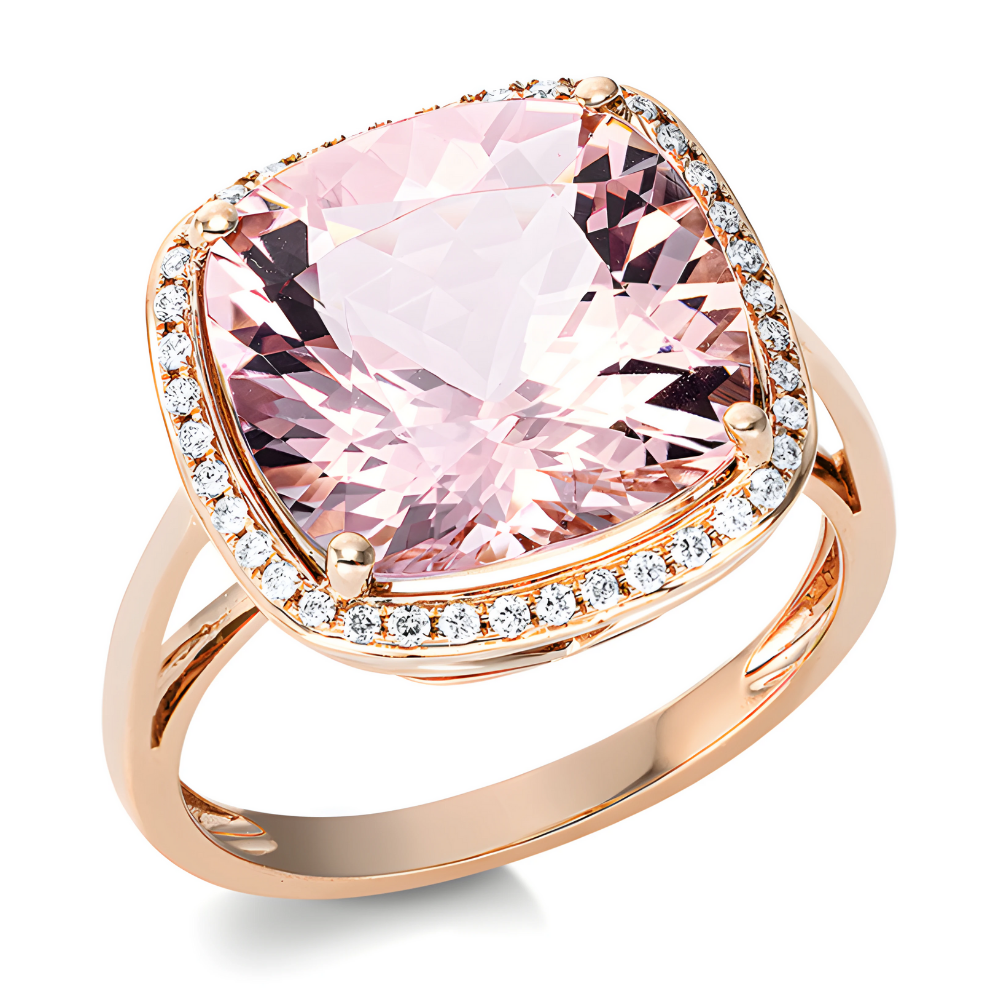 Morganitas Pink – žiedas su morganitu ir deimantais (6.57 ct)