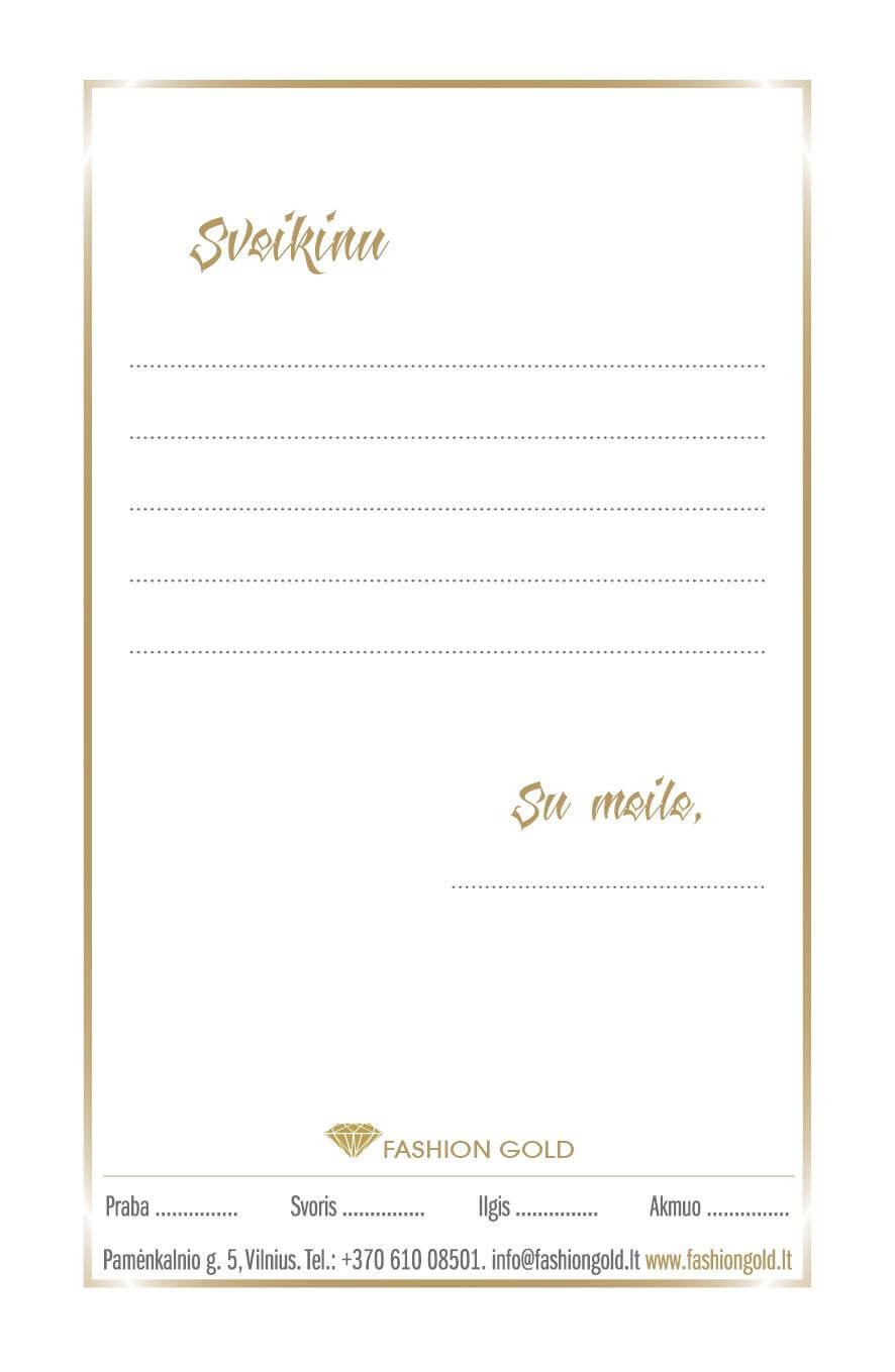 Prekes galima atsiimti ir tiesiogiai mūsų partnerių juvelyrikos salone Vilniuje, adresu Pamėnkalnio g. 5, Vilniuje. Dėl atsiėmimo būtina iš anksto susisiekti telefonu +370 (679) 50 000 arba el. paštu info@fashiongold.lt, kad suderintume laiką.
