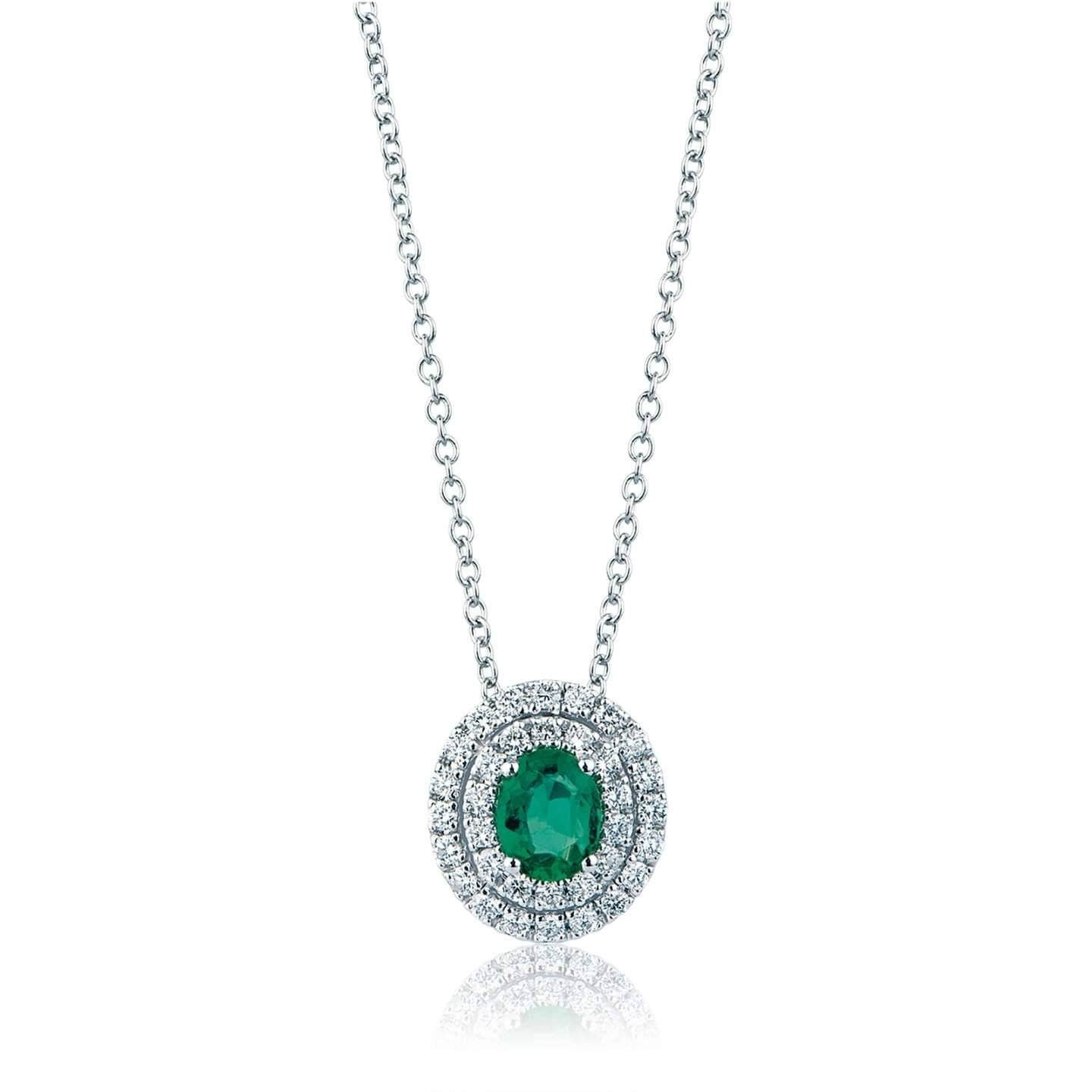 Prabangus pakabukas su smaragdais ir deimantais, kurį kūrė juvelyrikos kompanija iš Italijos „Mirco Visconti“. Ovalo formos pakabuką puošia 0,36 ct smaragdas, o aplink 0,11 ct briliantai
