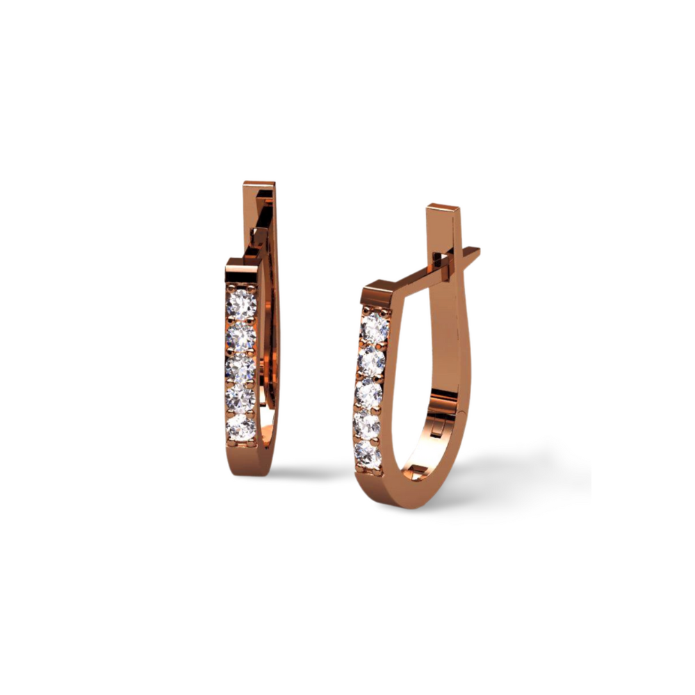 „Fashion Gold“ juvelyrų kurti elegantiški auksiniai auskarai, kurių kiekvieną puošia po penkis deimantus. Auskarų užsegimas fiksuojasi, todėl jų nepamesite. Pagaminta Lietuvoje. Auskarai gali būti pagaminti pagal užsakymą: raudono, geltono bei balto aukso.