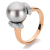 Raudono aukso žiedas su juodu perlu 11 mm ir deimantais (Taičio, 0.40 ct)