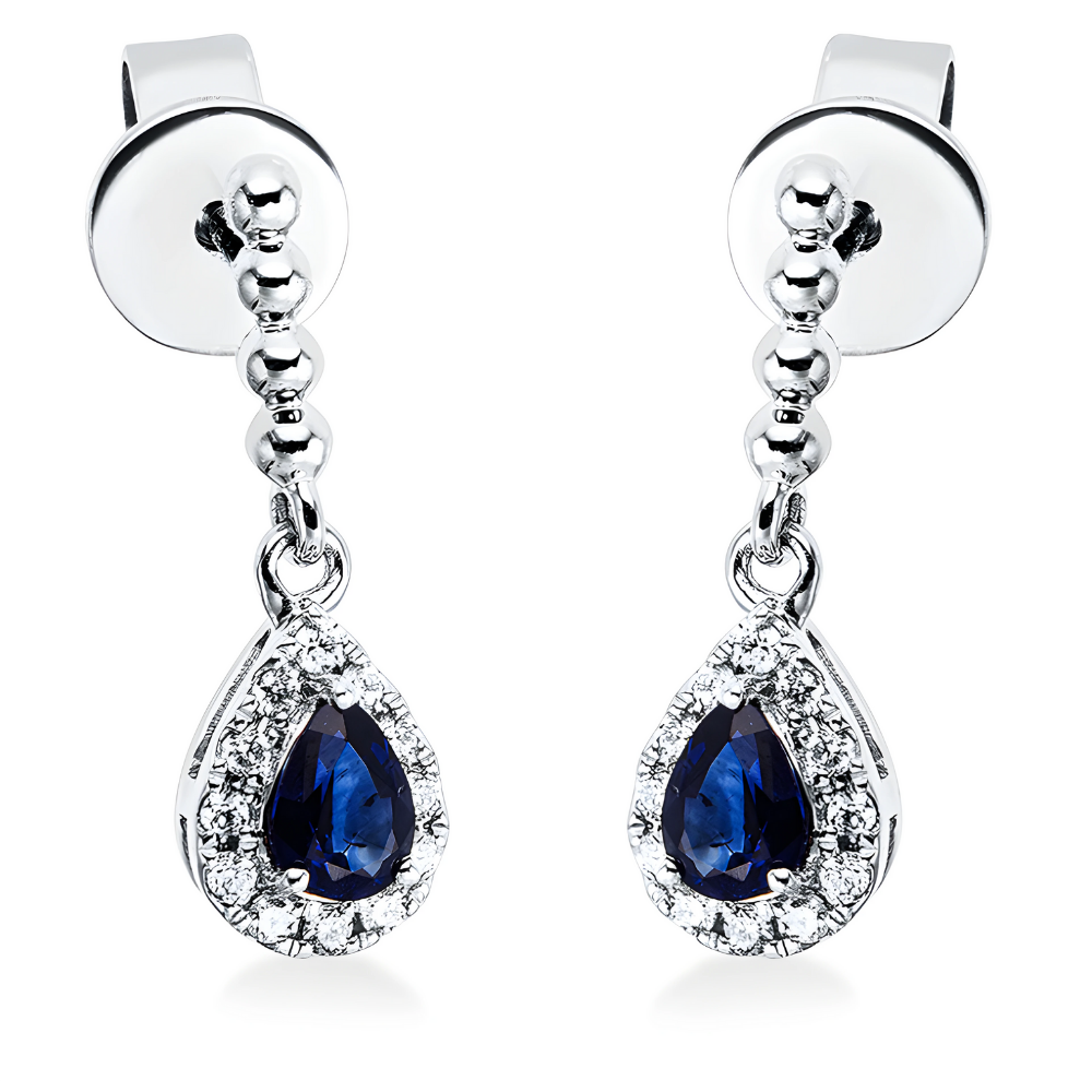 Auskarai vinukai su safyrais lašo formos ir deimantais – Safyrai (0.40 ct)
