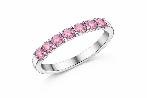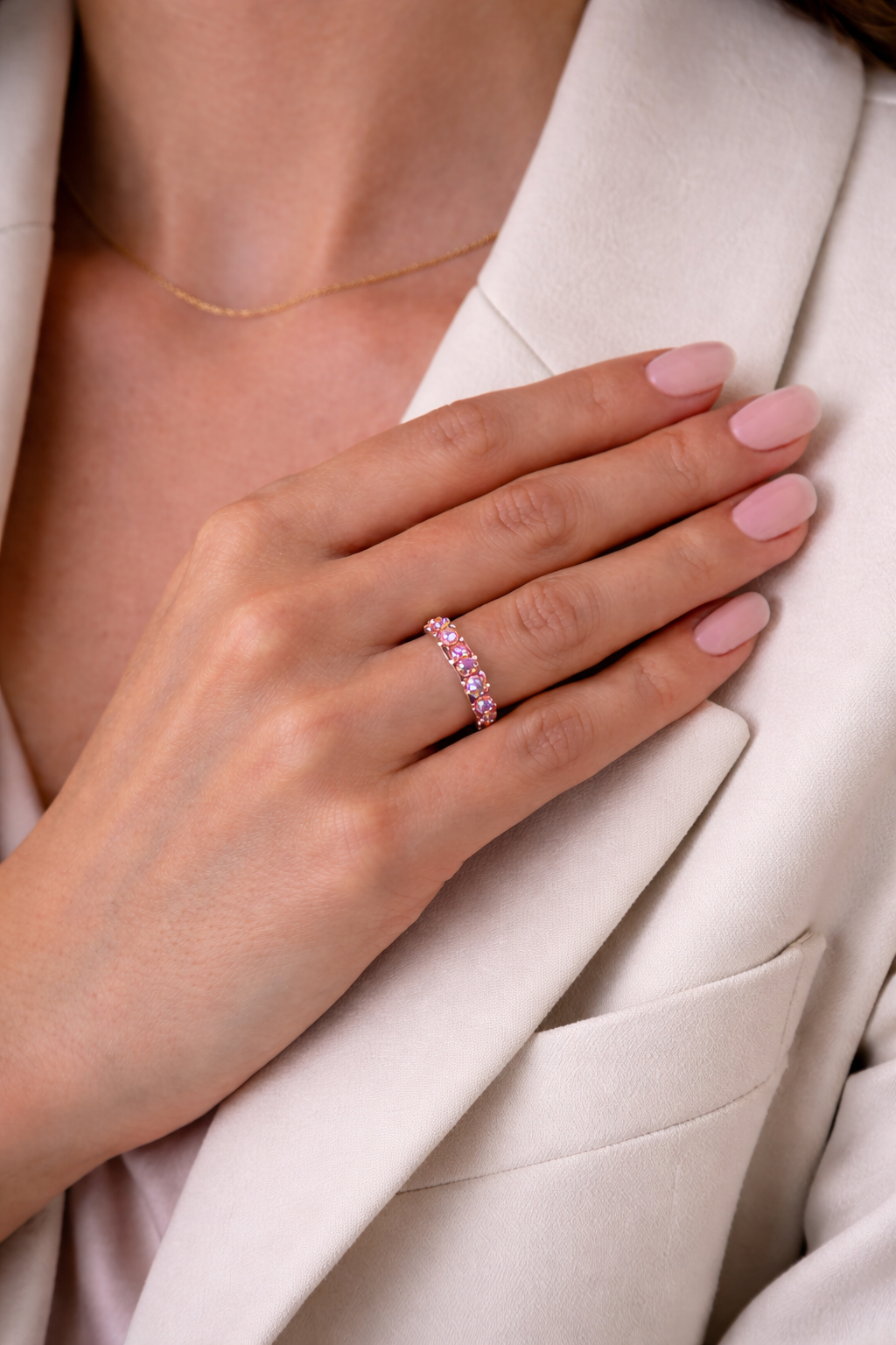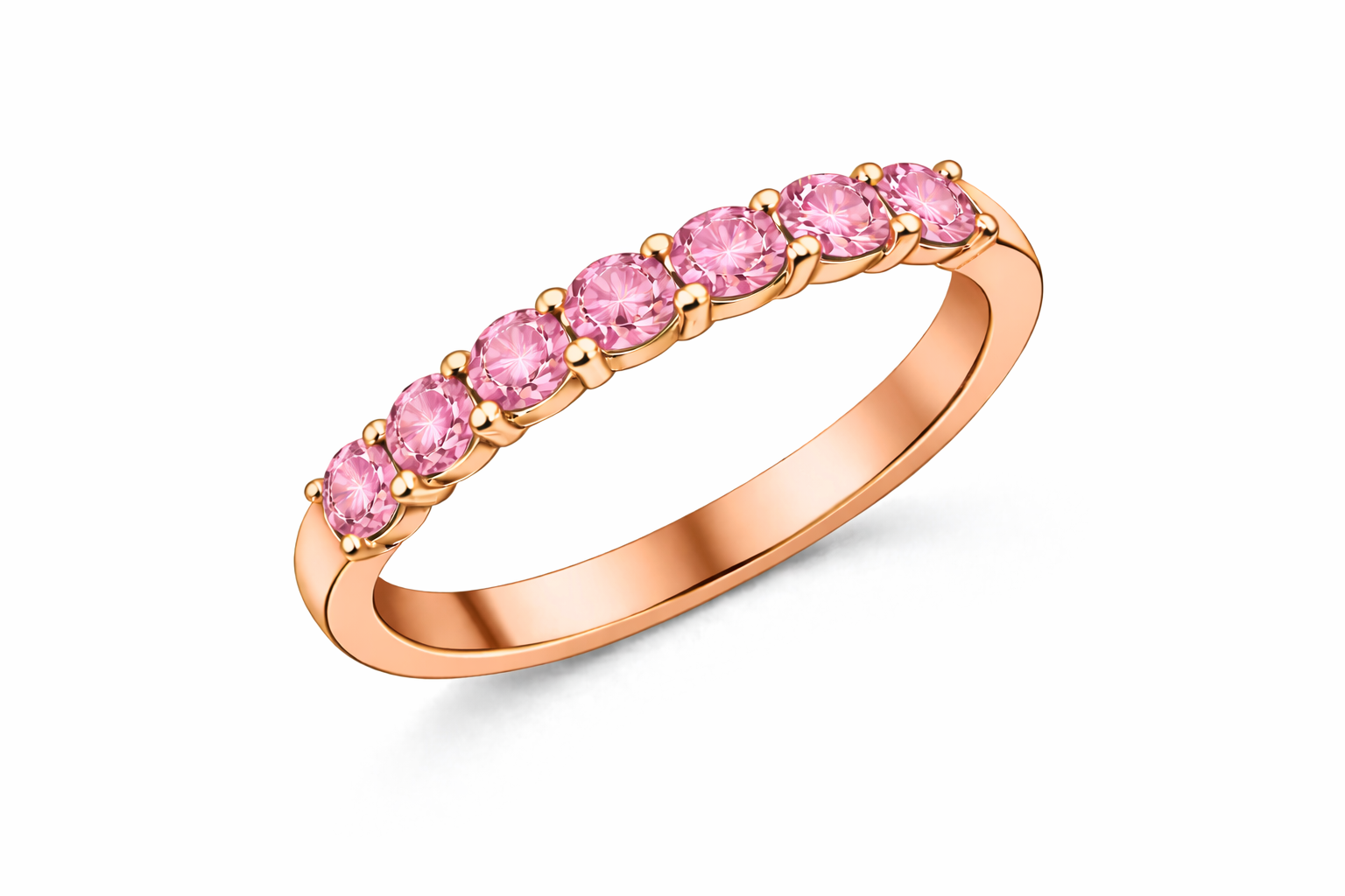 AI Juvelyras: žiedas juostelę su septyniais rožinės spalvos safyrais – gamyba pagal individualų projektą