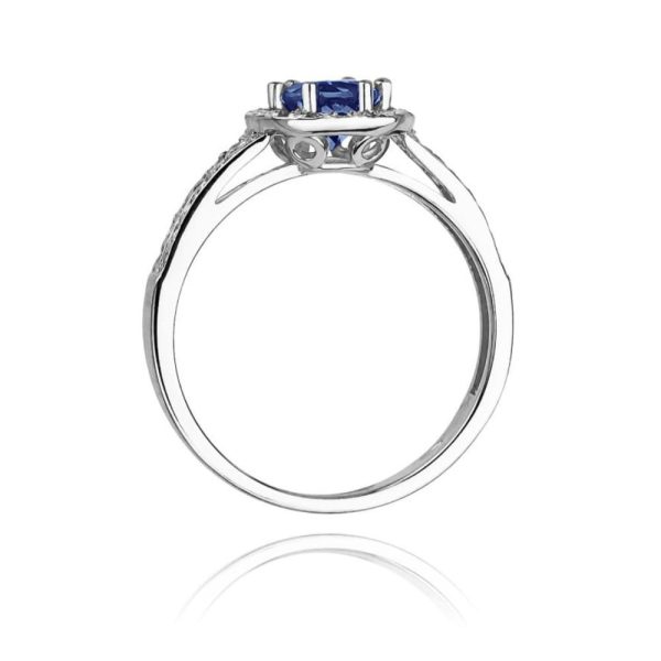 Safyro prabanga – balto aukso žiedas su safyru ir deimantais (0,70 ct)