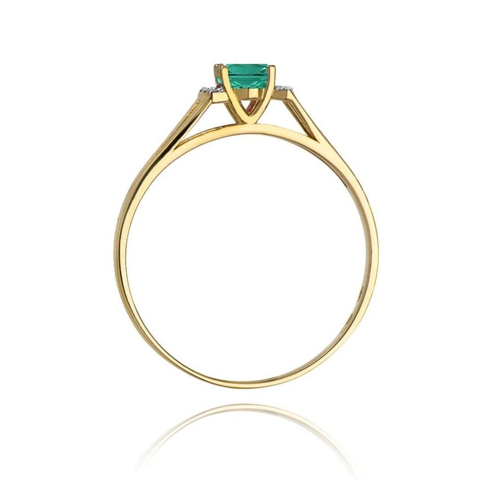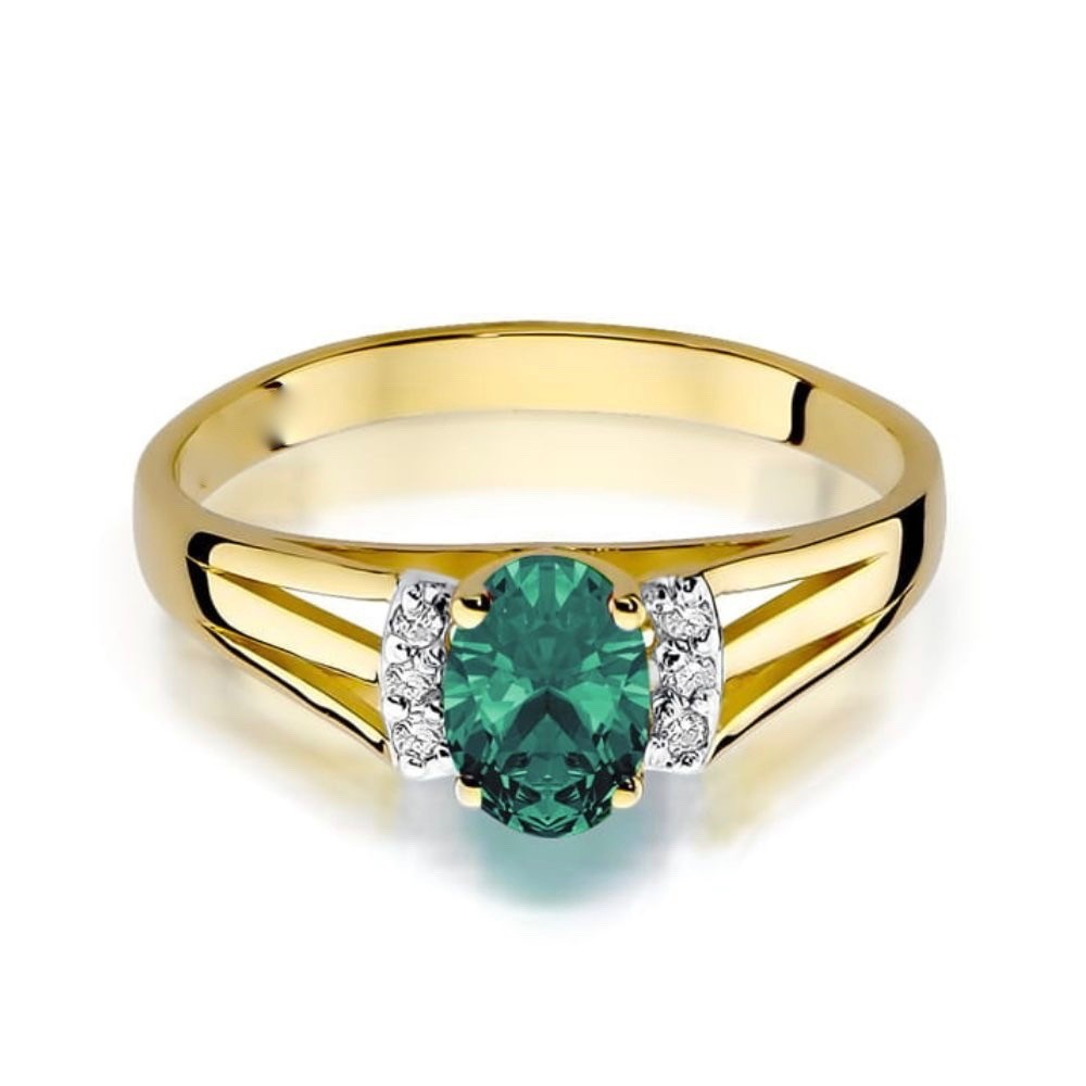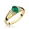 Smaragdinis – geltono aukso žiedas su ovalo formos smaragdu ir deimantais (0,45 ct)