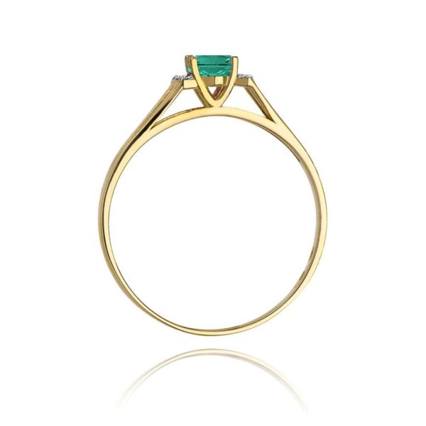 Geltono aukso žiedas su ovalo formos smaragdu ir deimantais. Smaragdas centre, deimantai sudėti iš abiejų pusių. Puikiai tinka sužadėtuvėms ir kasdienai, pridėdamas prabangą jūsų stilui.