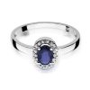 Spindinti akutė – balto aukso klasikinis žiedas su safyru ir deimantais