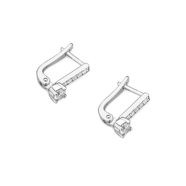 Balto aukso auskarai su anglišku užsegimu. Deimantai subtiliai įstatyti į karūnelę ir eilutę nuo viršaus iki apačios. Išskirtinė dovana ypatingoms progoms. Įamžinkite akimirką su šiais unikaliais auskarais!