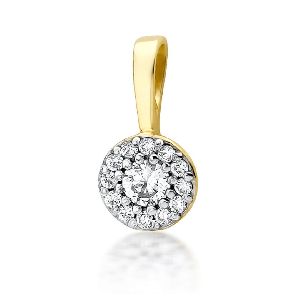 Halo dizaino geltono aukso pakabukas su žėrinčiais deimantais, kurie suteikia iliuziją didesnio deimanto. Puikus pasirinkimas kasdienai ir ypatingoms progoms.