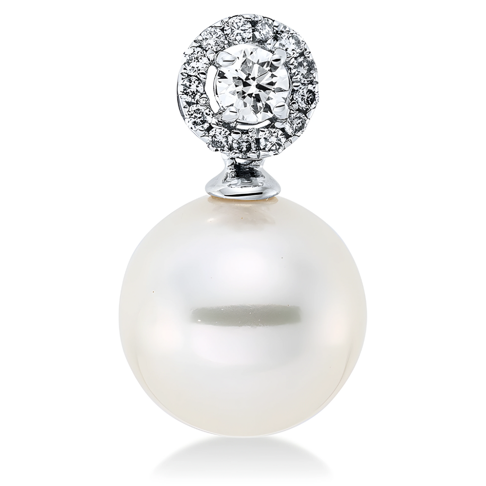 Subtilus pakabukas su jūriniu perlu ir deimantais (South Sea, 11 mm, 0.18 ct)
