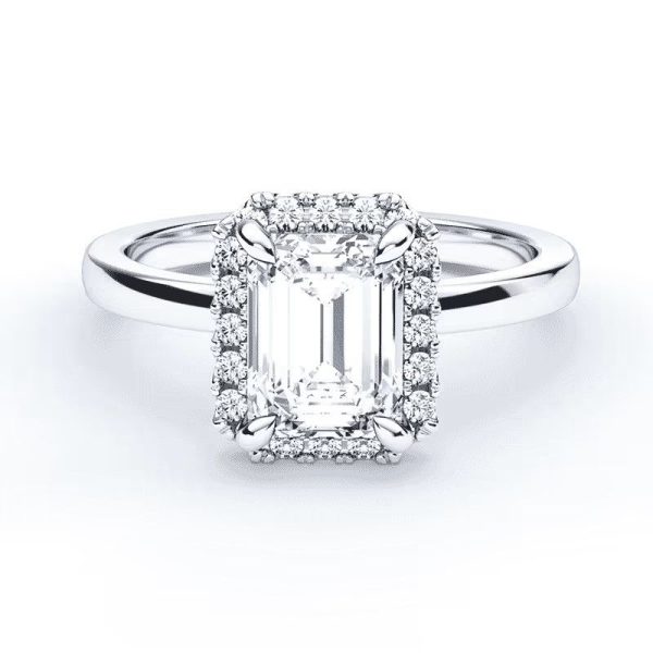 Auksinio lankelio spalva su komforto zona gali būti pritaikyta pagal jūsų norus – nuo klasikinio geltono aukso iki modernios baltos ar šiltos raudonos spalvos. Keturios tvirtos kojelės laikiklyje iškelia stačiakampio formos deimantą į dėmesio centrą, leisdamos jam kalbėti už jus. Šis sužadėtuvių žiedas – tai ne tik elegancijos, prabangos ir amžinos meilės simbolis, bet ir kasdieną nešiojamas priminimas apie jūsų gyvenimo kelionę kartu. Tai daugiau nei žiedas su Emerald pjūvio deimantu – tai pažadas, kuris blizga tiek ant jūsų rankos, tiek viduje.