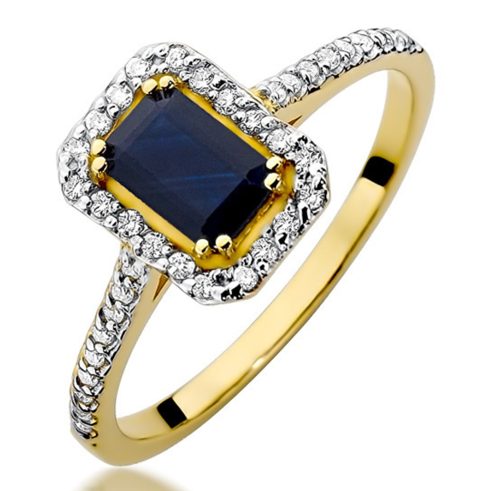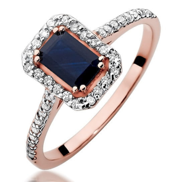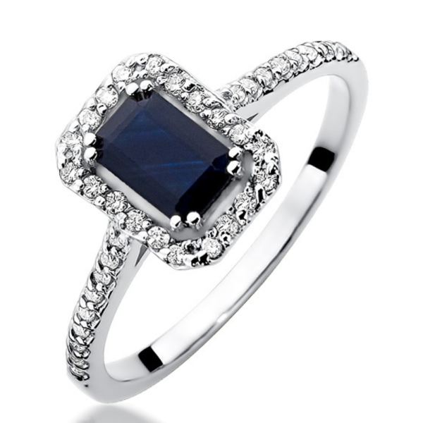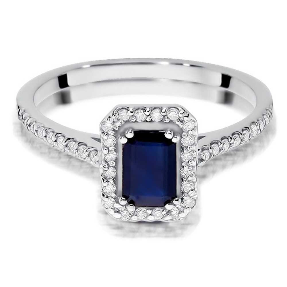 Sužadėtuvių žiedas su safyru ir deimantais – Stačiakampis safyras (0.79 ct)