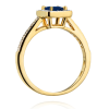Halo dizaino sužadėtuvių žiedas su safyru 0,60 karato ir natūraliais deimantais 0,19 karatų. Natūralūs deimantai. Nemokamas graviravimas.