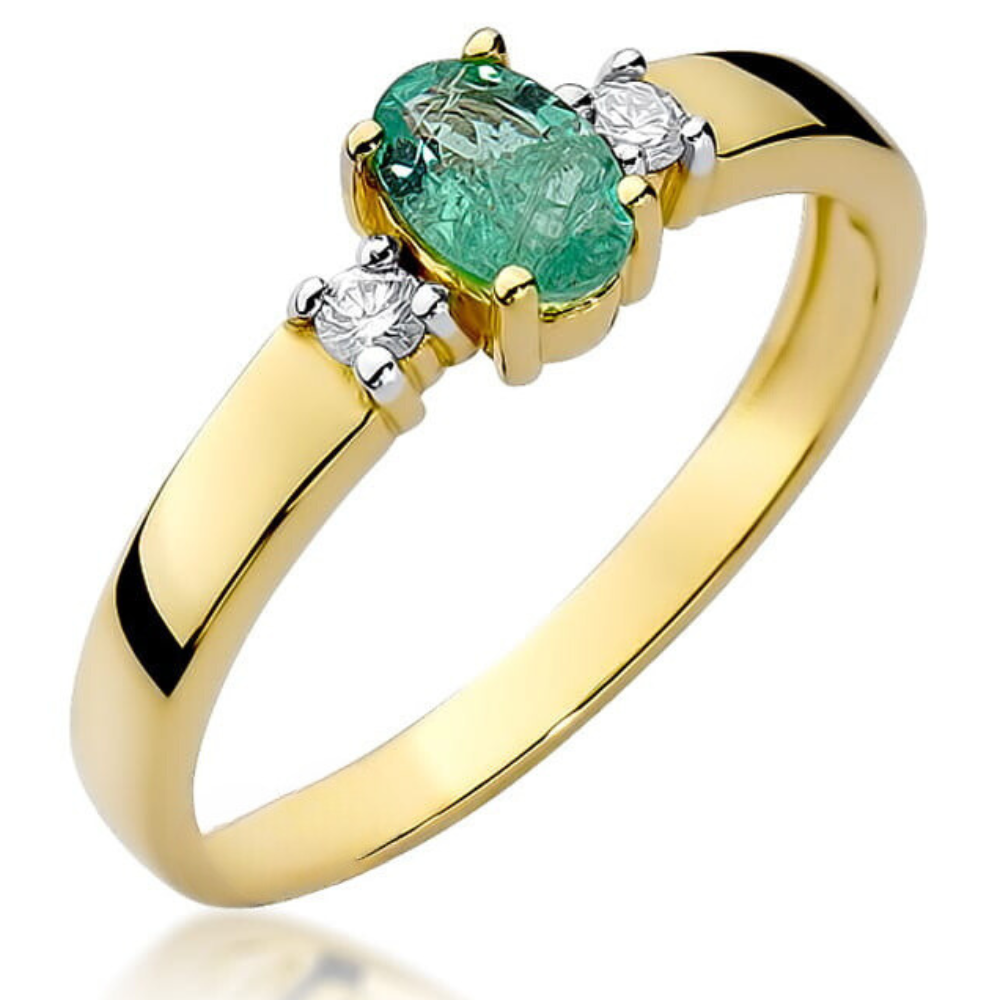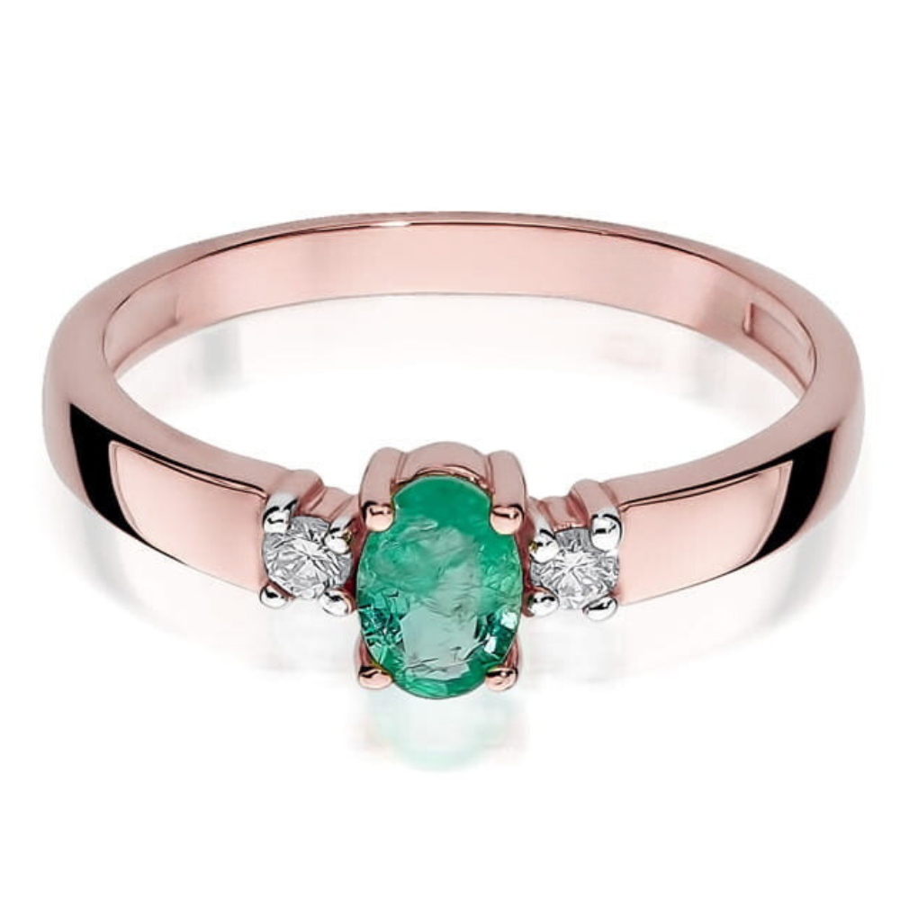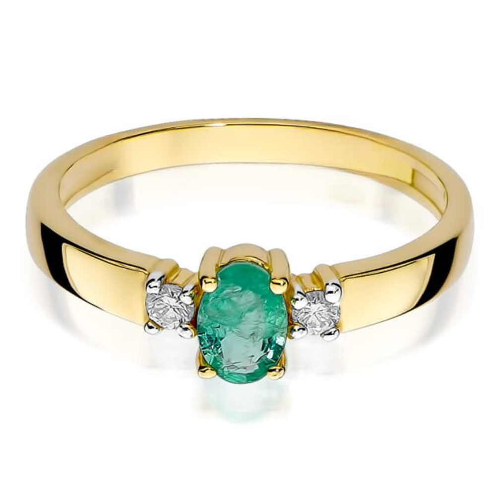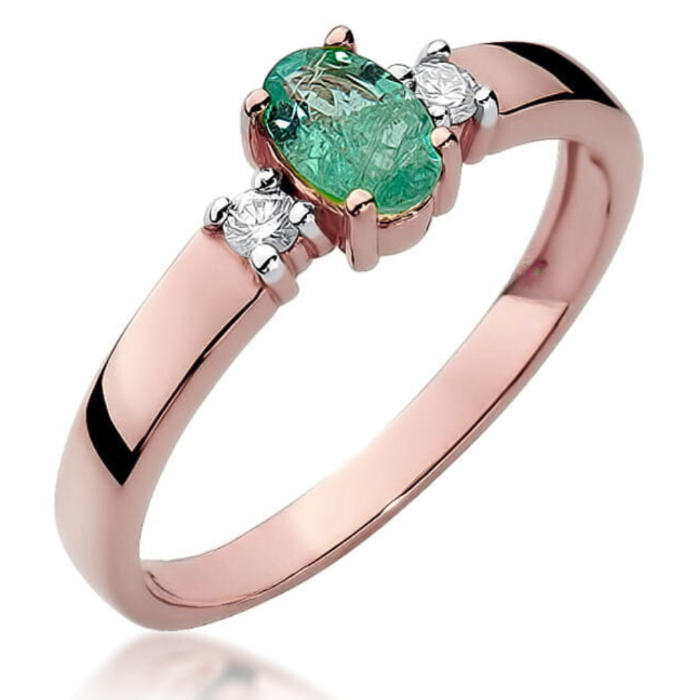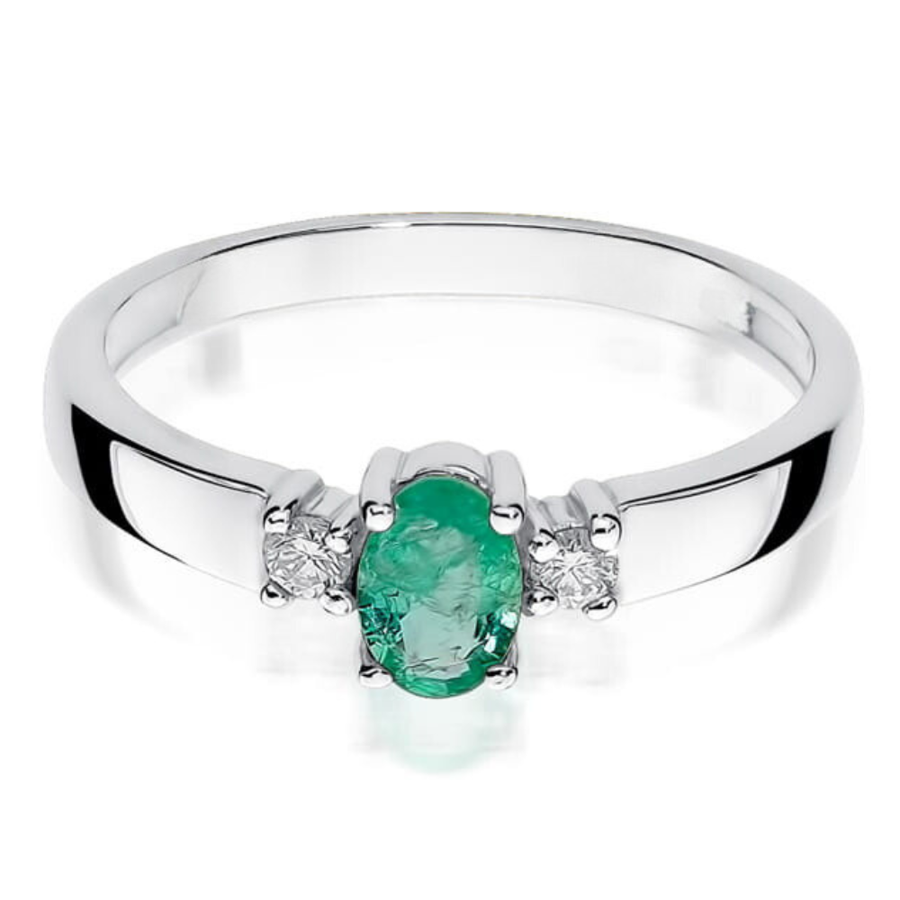 Sužadėtuvių žiedas su smaragdu ir deimantais – Smaragdas (0.48 ct)