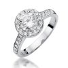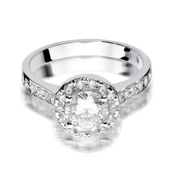 Švytinti prabanga – halo dizaino balto aukso žiedas su deimantais (0,74 ct E/VS2)
