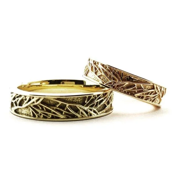 Prabangios geltono aukso spalvos vestuviniai žiedai alsuoja didybe, prabanga, solidumu. Nelygus, ornamentuotas žiedų paviršius suteikia originalumo, todėl bus puikus sprendimas jaunavedžiams, trokštantiems šio to ypatingo ir nekasdienio. Auksiniai vestuviniai žiedai Jam ir Jai Vilniuje – platus pasirinkimas gera kaina.