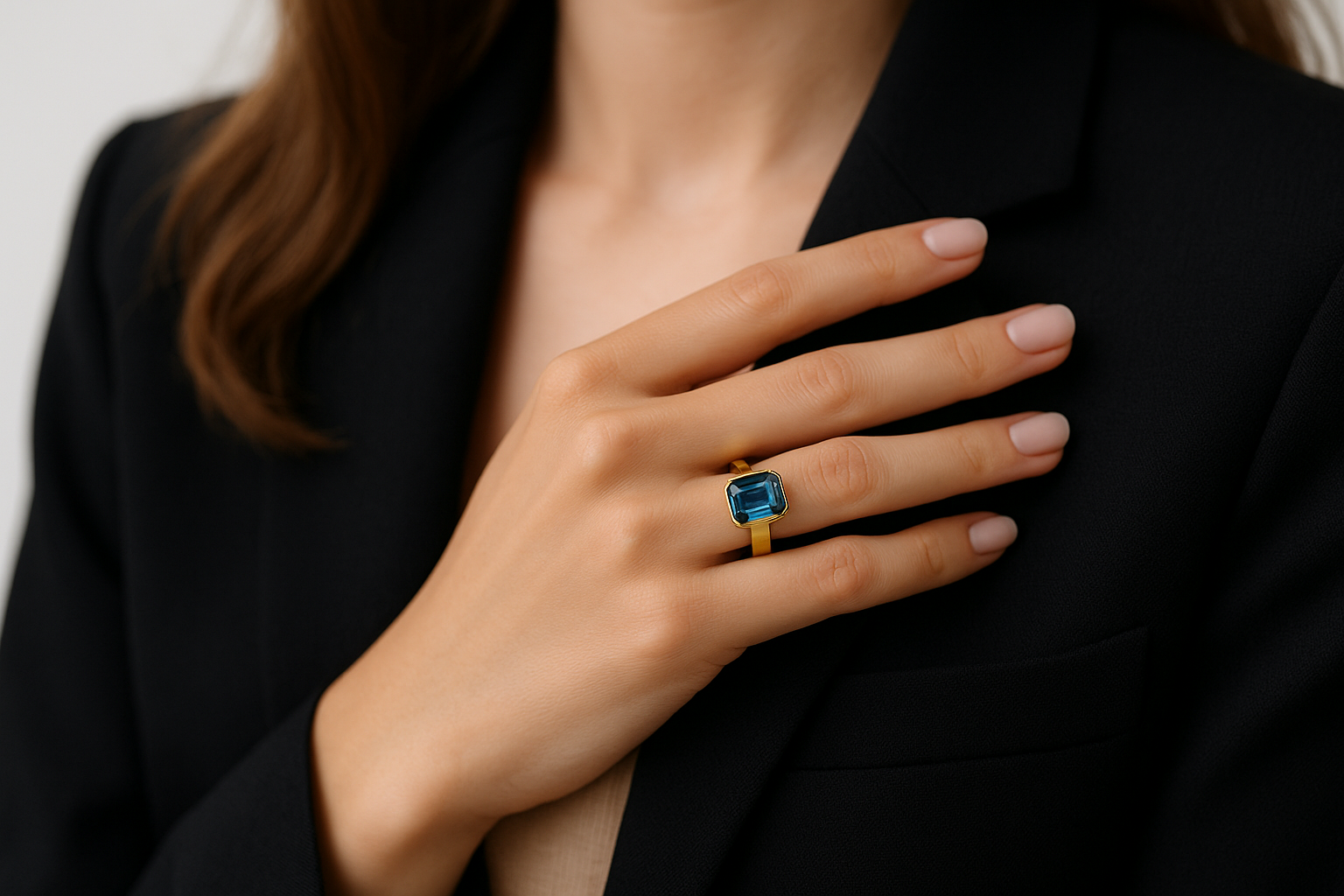 Projektuojant žiedą su turmalinu Indigolit ir deimantiniu lankeliu, juvelyras pirmiausia įvertina Indigolit turmalino savybes – jo skaidrumą, spalvos gylį ir intensyvumą, kuris gali varijuoti nuo ryškios mėlynos iki sodrios, tamsiai mėlynos spalvos su violetiniu atspalviu. Būtent pagal konkretų Indigolit turmalino akmenį kuriamas visas dizainas: karūnėlės aukštis, halo deimantų išdėstymas, žiedo plotis ir forma. Kiekvienas žiedas ir kiti papuošalai reikalauja itin kruopštaus ir profesionalaus darbo, leidžiančio pasiekti tobulą balansą tarp estetikos, patogumo ir ilgaamžiškumo.