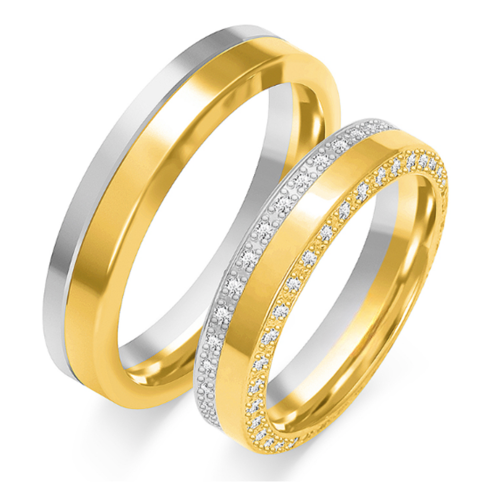 Vestuviniai žiedai su dviem eilėm deimantų (5 mm) (0,55 ct) (pora)
