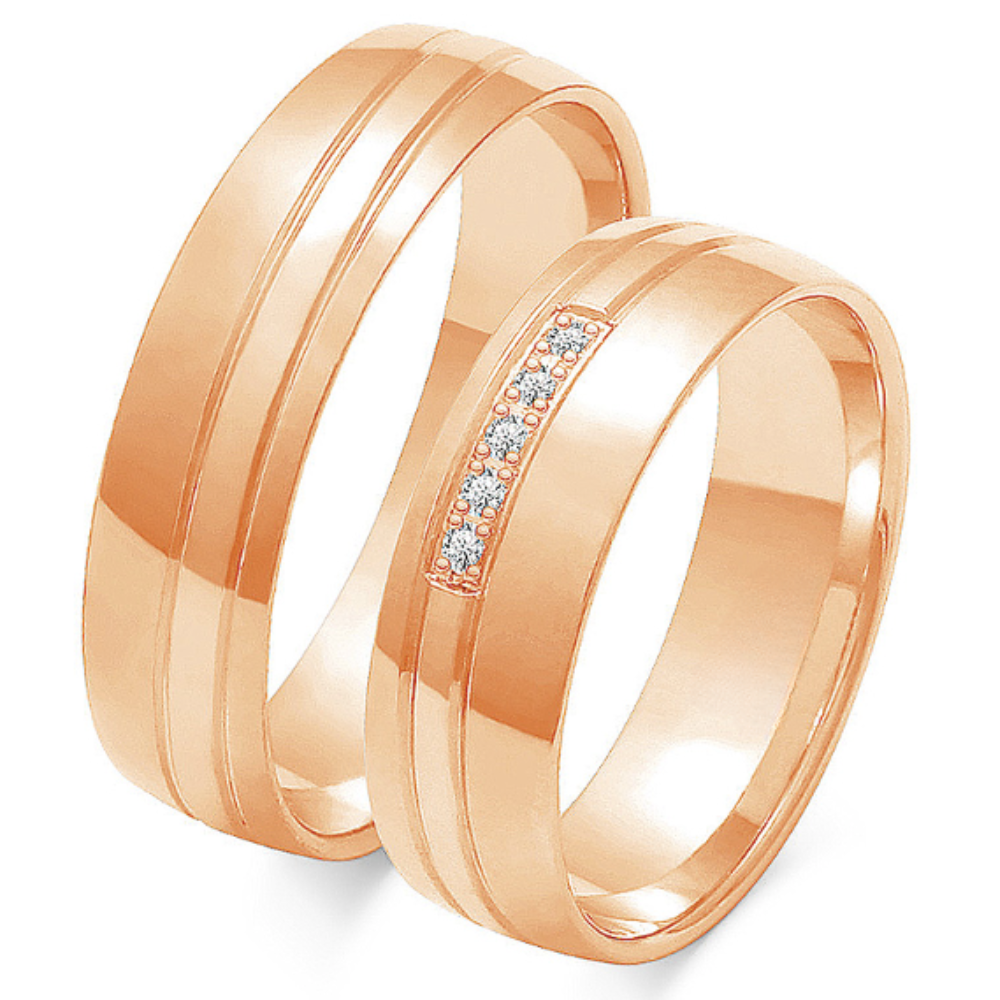Vestuviniai žiedai – Trys linijos (0,08 ct) (6 mm) (pora)
