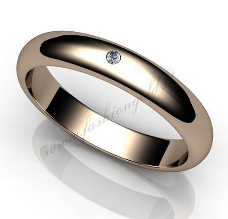 Klasikinio dizaino rankų darbo vestuvinis žiedas visuomet išliks madingas, o jį puošiantis deimantas – skoninga ir prabangos suteikianti detalė. Pavyzdiniame paveikslėlyje žiedas yra raudono aukso spalvosVestuvinius žiedus kūrė „Fashion Gold“ kompanijos juvelyrai. Šį vestuvinį žiedą galima pagaminti iš šių metalų bei prabų: aukso 585, 750 prabos. Žiedo metalo spalva: pagal pageidavimą. Žiedo plotis: 4mm (galima keisti). Akmuo galima pasirinkti: Briliantas (RW-W, VS-SI) 1 vnt – 0,03 ct.