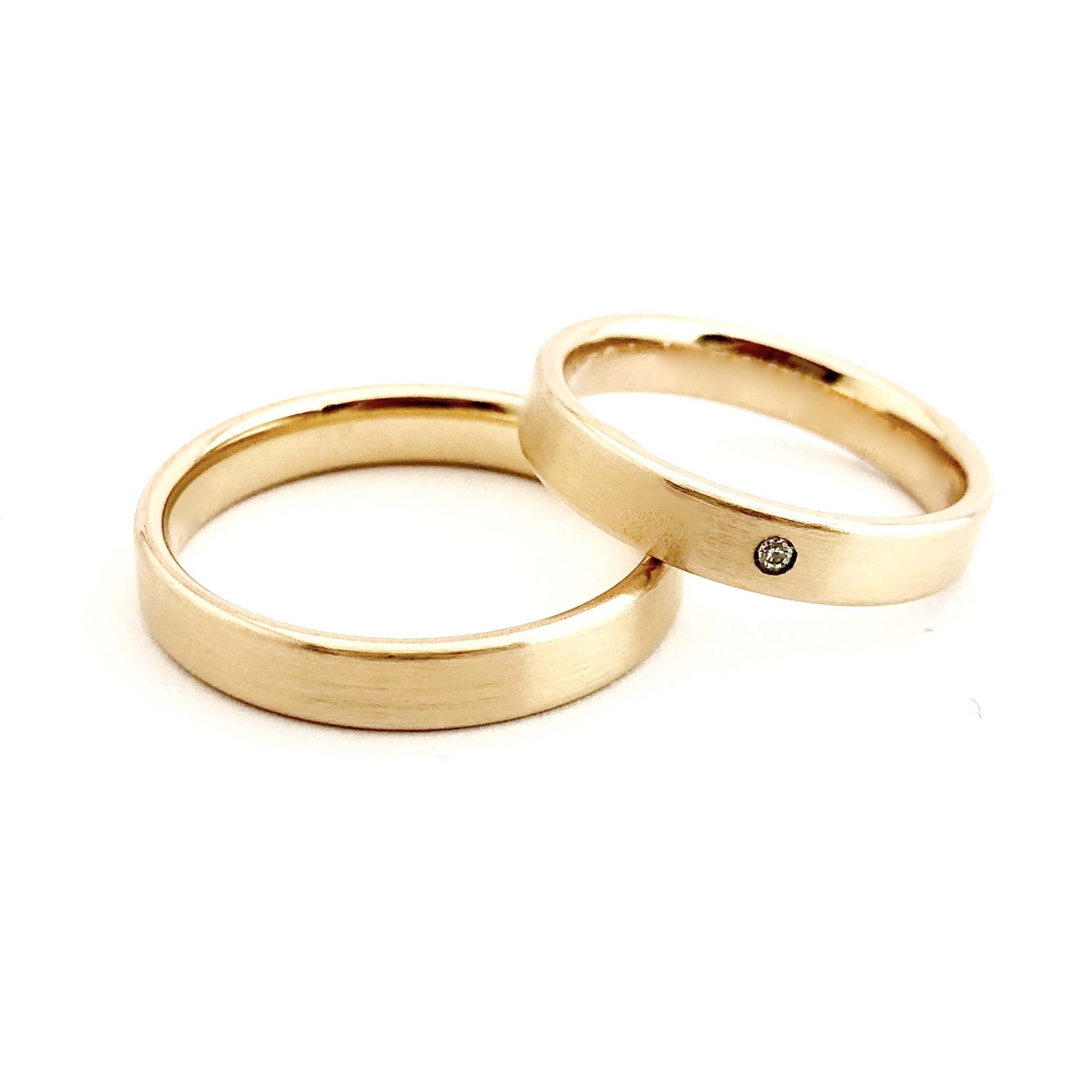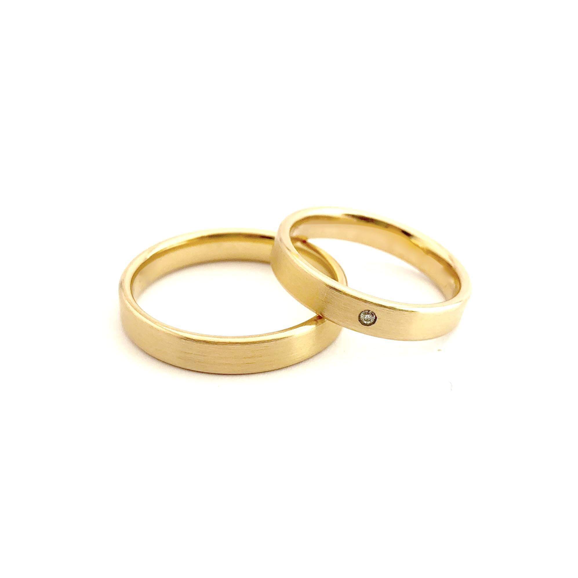 Apie vestuvinį žiedą: Klasikinis lygus vestuvinis žiedas neužapvalintais, bet kampuotais kraštais iš raudono, geltono arba balto aukso – puikus pasirinkimas norintiems niekad iš mados neišeinančio dizaino ir patogumo. Šis žiedas papuoštas spindinčiu tikru deimantu.