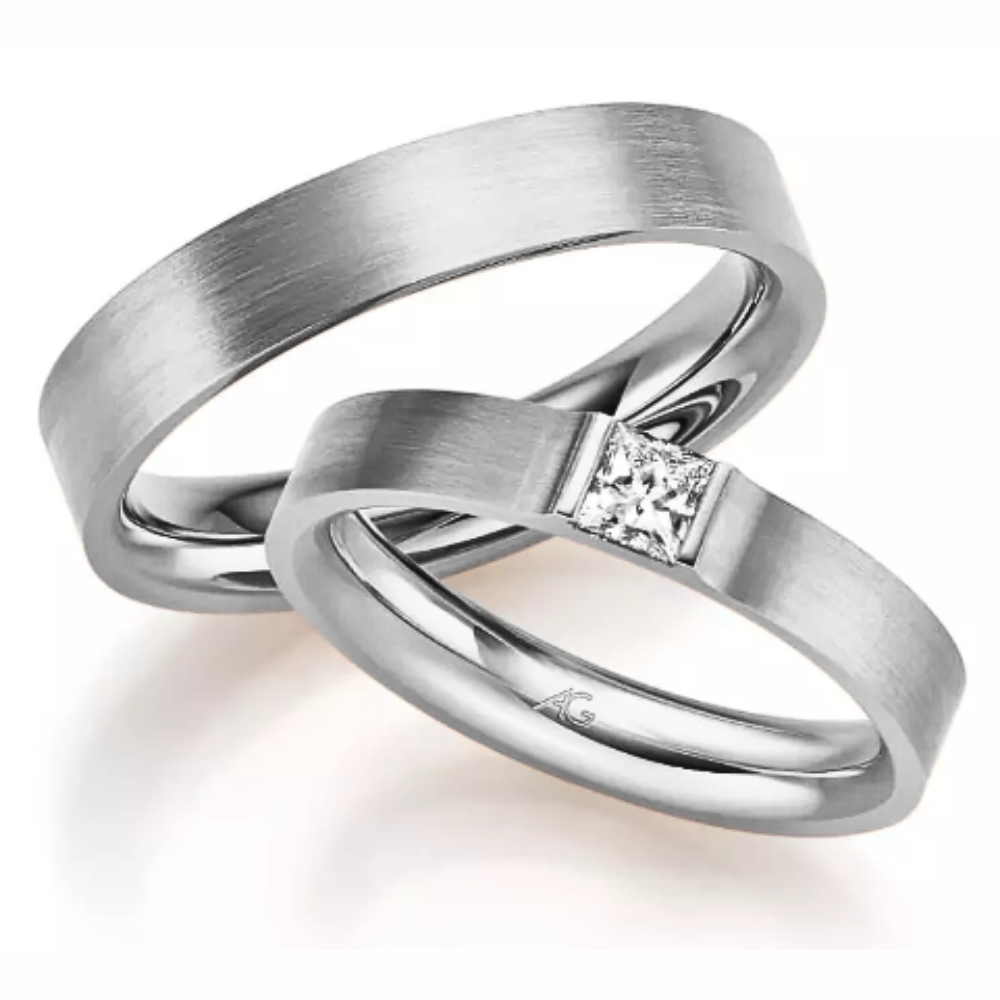 Vestuvinis žiedas 3.7 mm su išskirtinio grožio 0,25 karato Princess (kvadrato) formos deimantu. Vokiška kokybė iš „Gerstner“ kompanijos – aukščiausia kokybė ir rankų darbas. Tiesi forma iš išorės ir minimali vidinė komforto zona užtikrina maksimalų patogumą kasdieniam nešiojimui