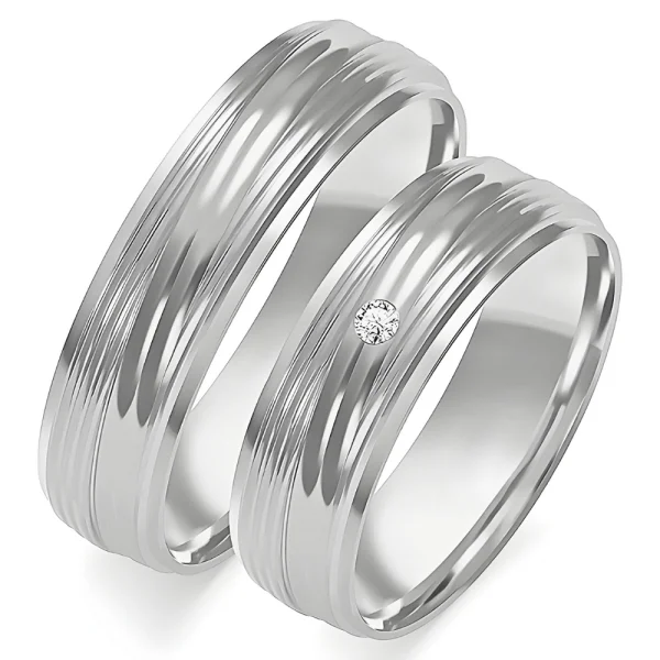 Vestuvinių žiedų gamyba – su reljefu ir deimantu (0,02 ct) (pora)