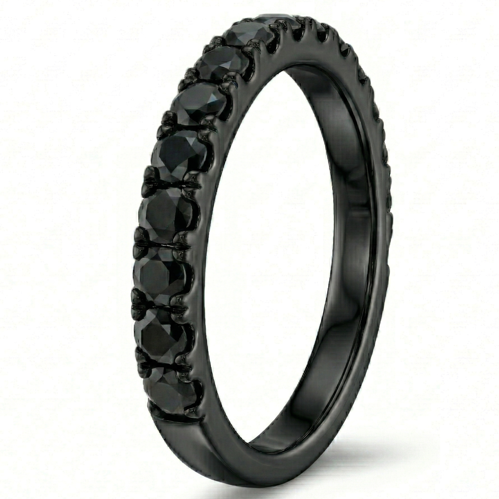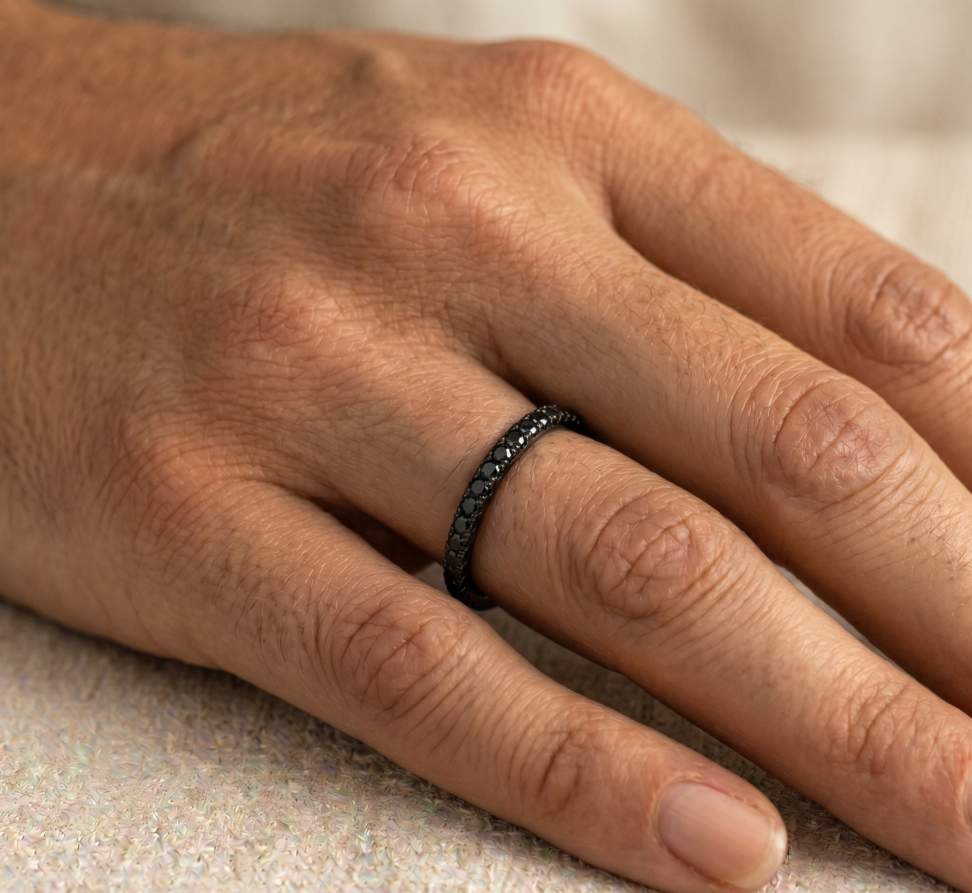 Žiedas su juodais deimantais – deimantinė juostelė juodo aukso (15 vnt – 0.75 ct) 2.5 mm