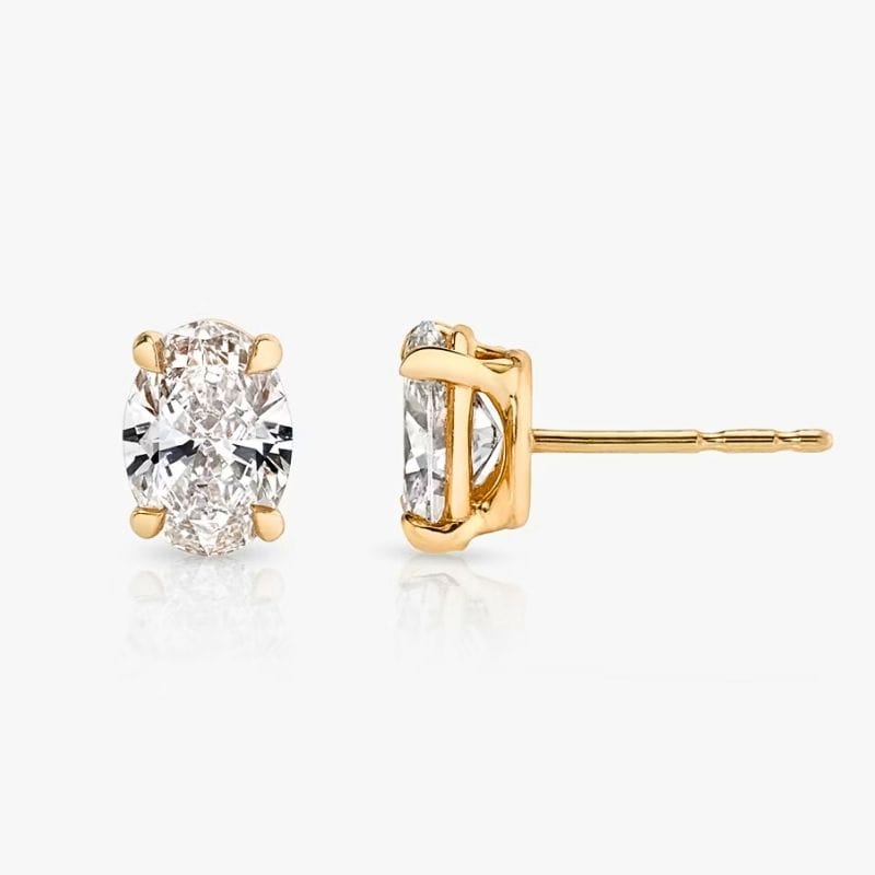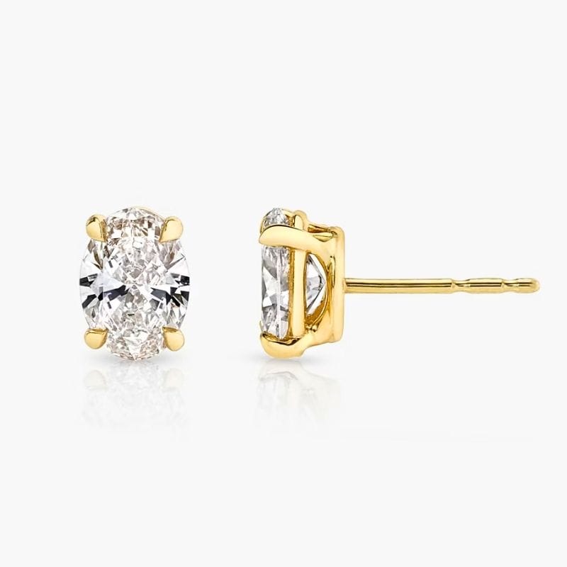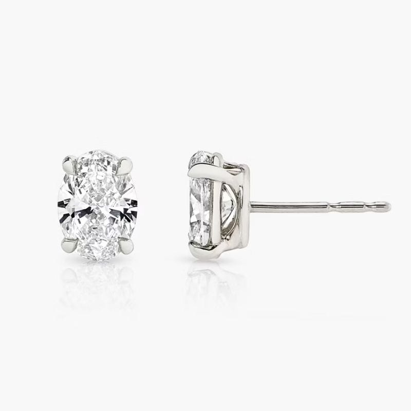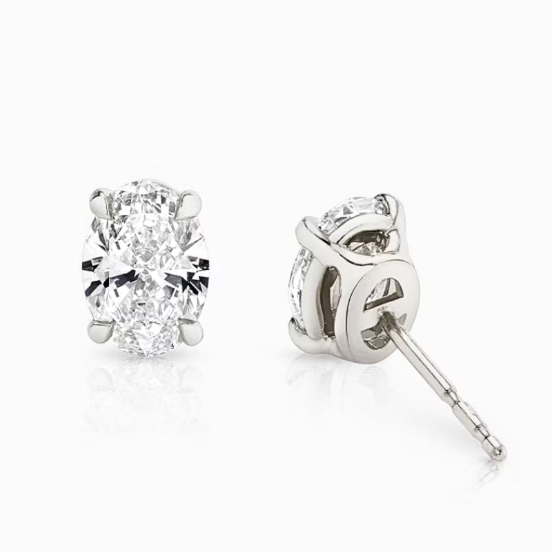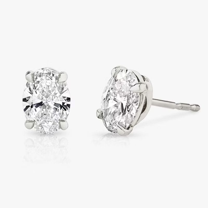 Klasikiniai auskarai su deimantais (2.40 ct) – ovalo formos akmens spindesys.